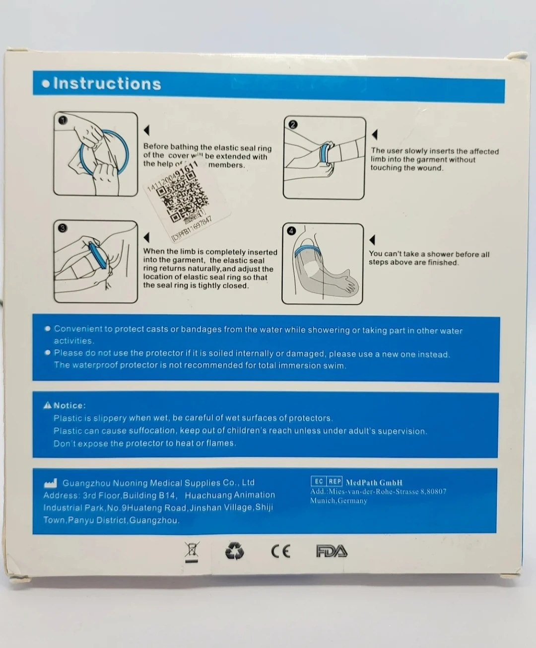 Foot Cast Cover for Adult Shower, Waterproof Seal Tight Cast and Bandage Protector for Showering, Bathing and Hot-Tub, Length 36 cm Shower Foot Protector