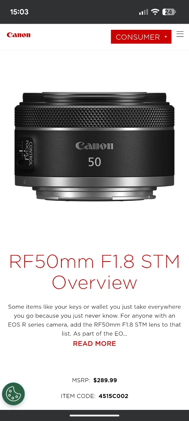Canon RF 50mm F1.8 STM Lens