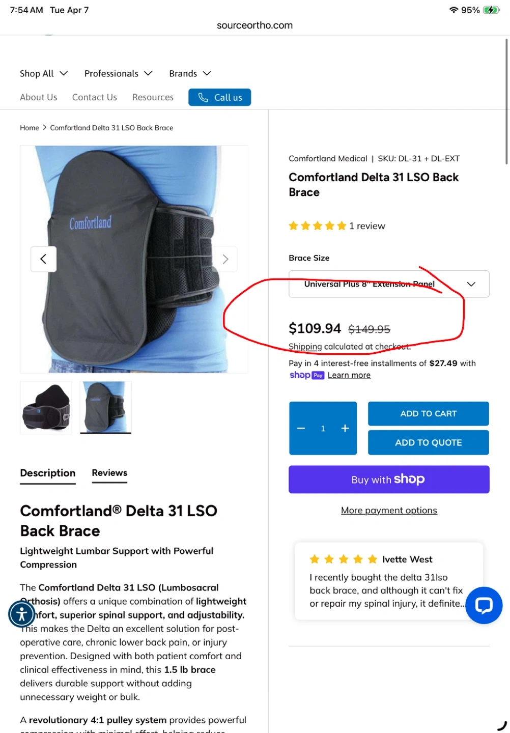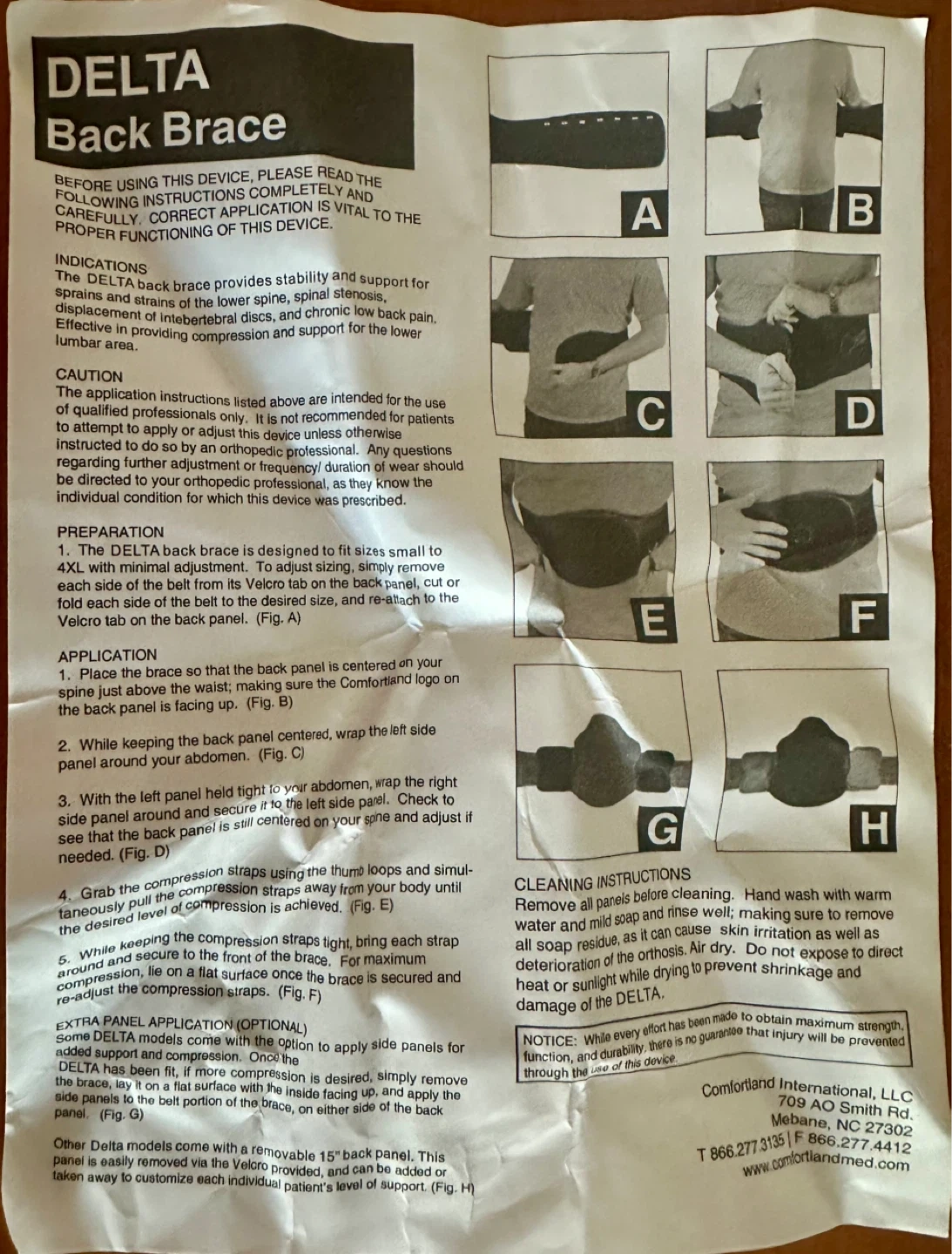 Comfortland Delta 31 LSO back brace with powerful compression. Lightweight lumbar support for post-operative care, chronic lower back pain, or injury prevention. Includes 1.5 lb brace. Universal Plus 8" Extension Panel.