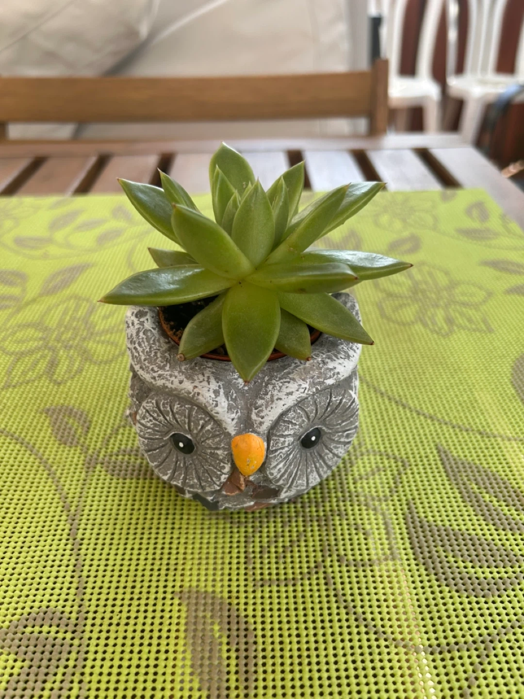 Cute little succulent in an owl-shaped pot! It would make a great addition to any room or a lovely gift for a plant lover