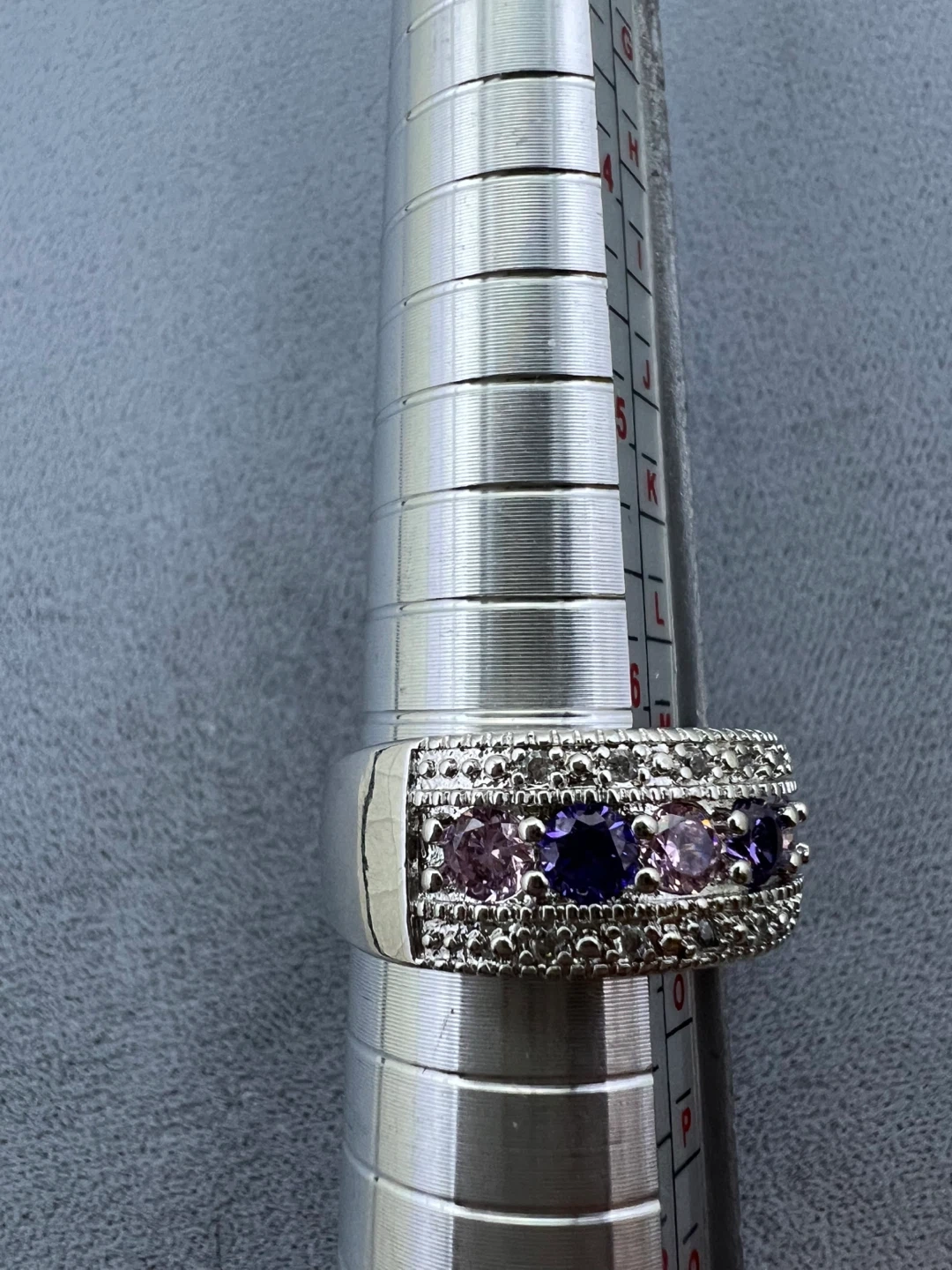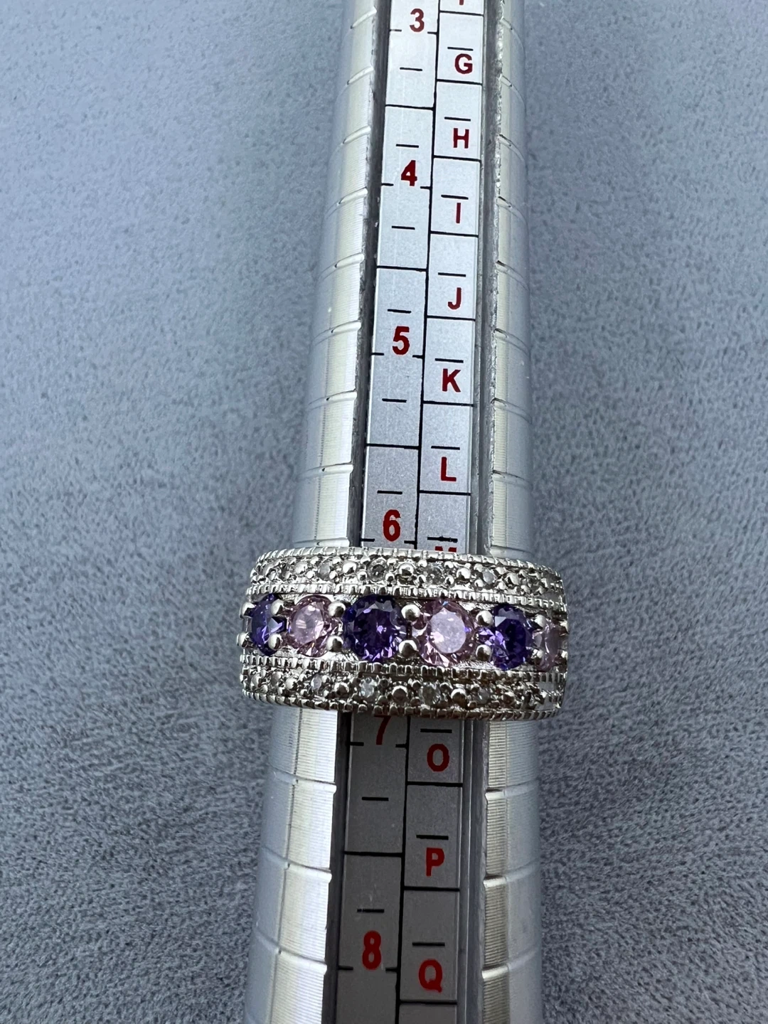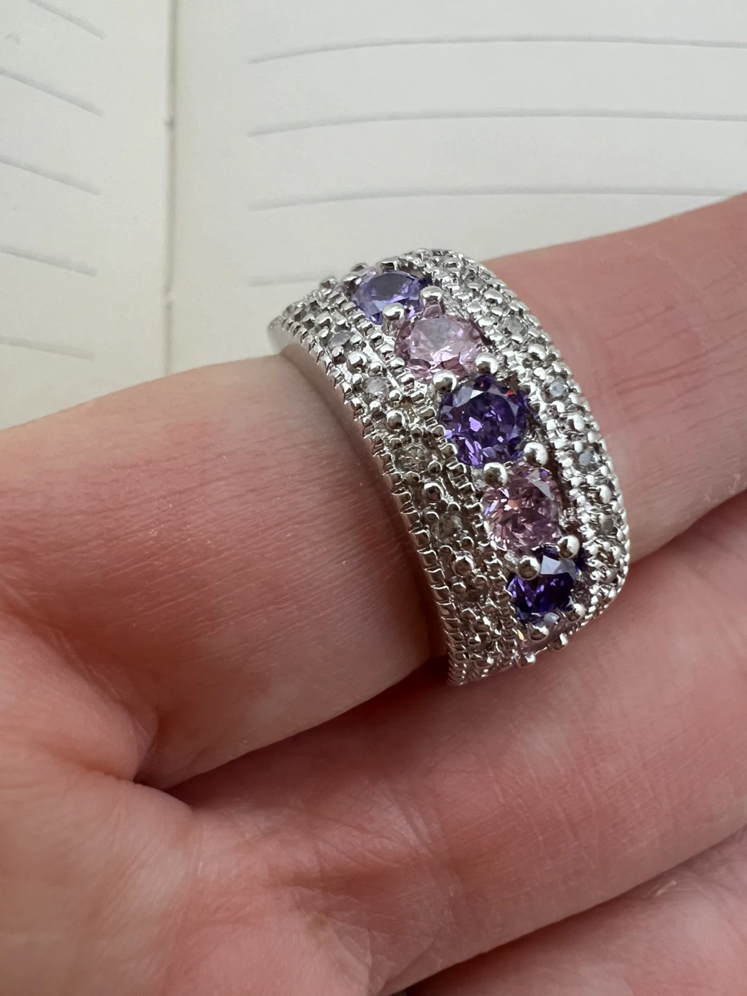 Alternating purple and pink stones and 2 rows of clear smaller cubic zirconia