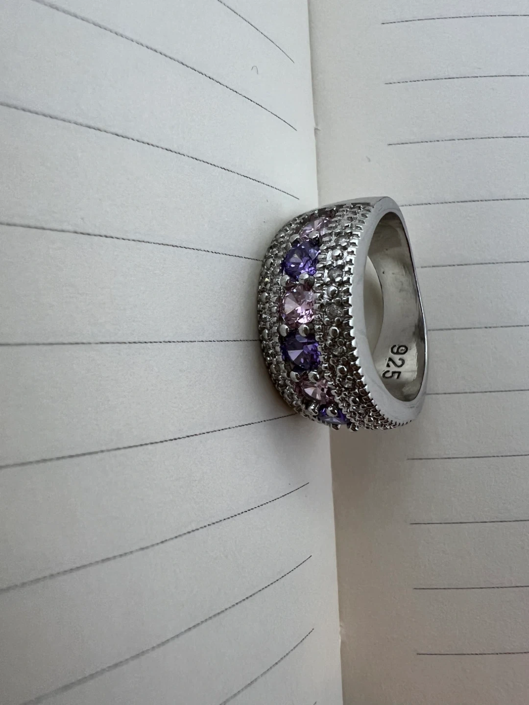 Alternating purple and pink stones and 2 rows of clear smaller cubic zirconia