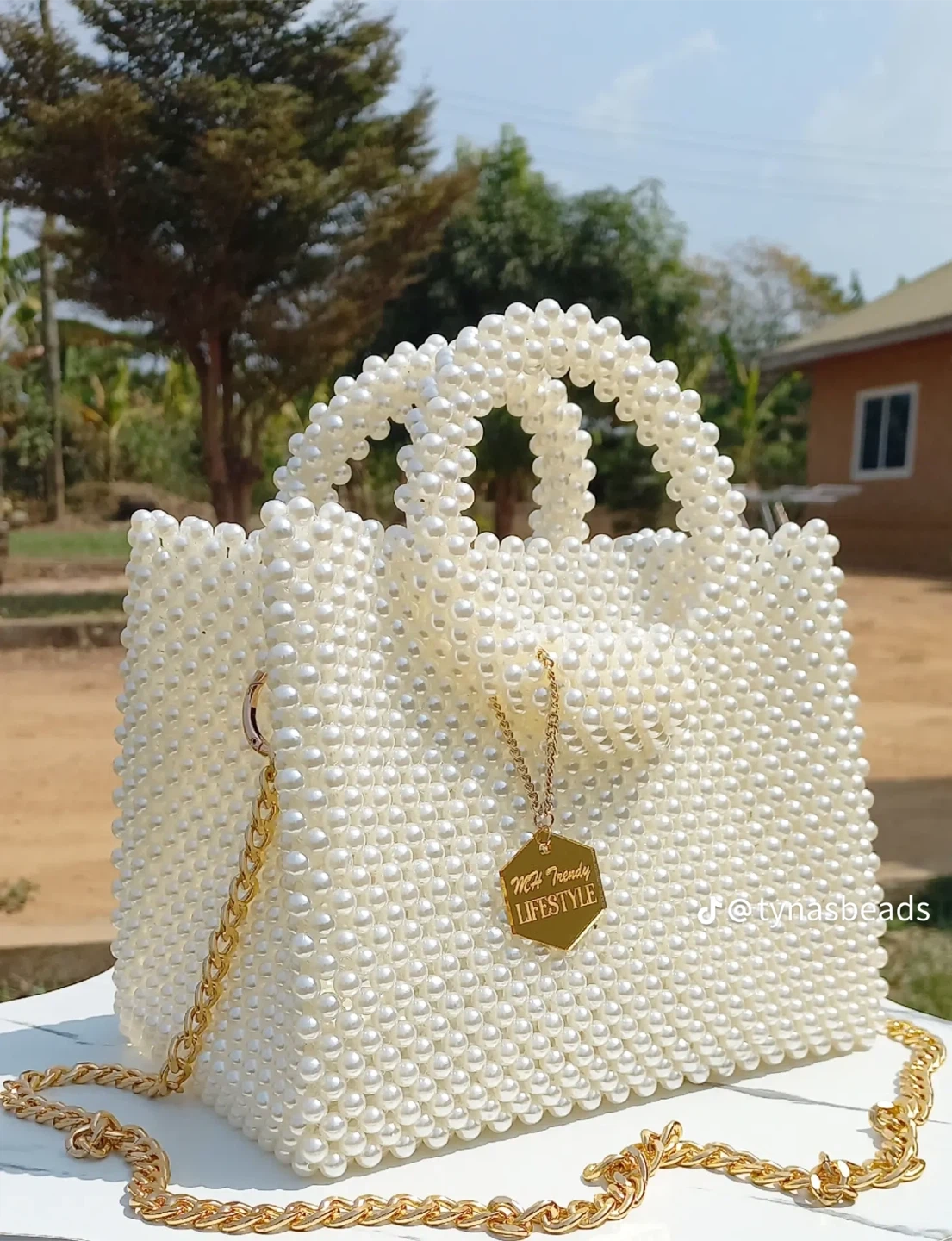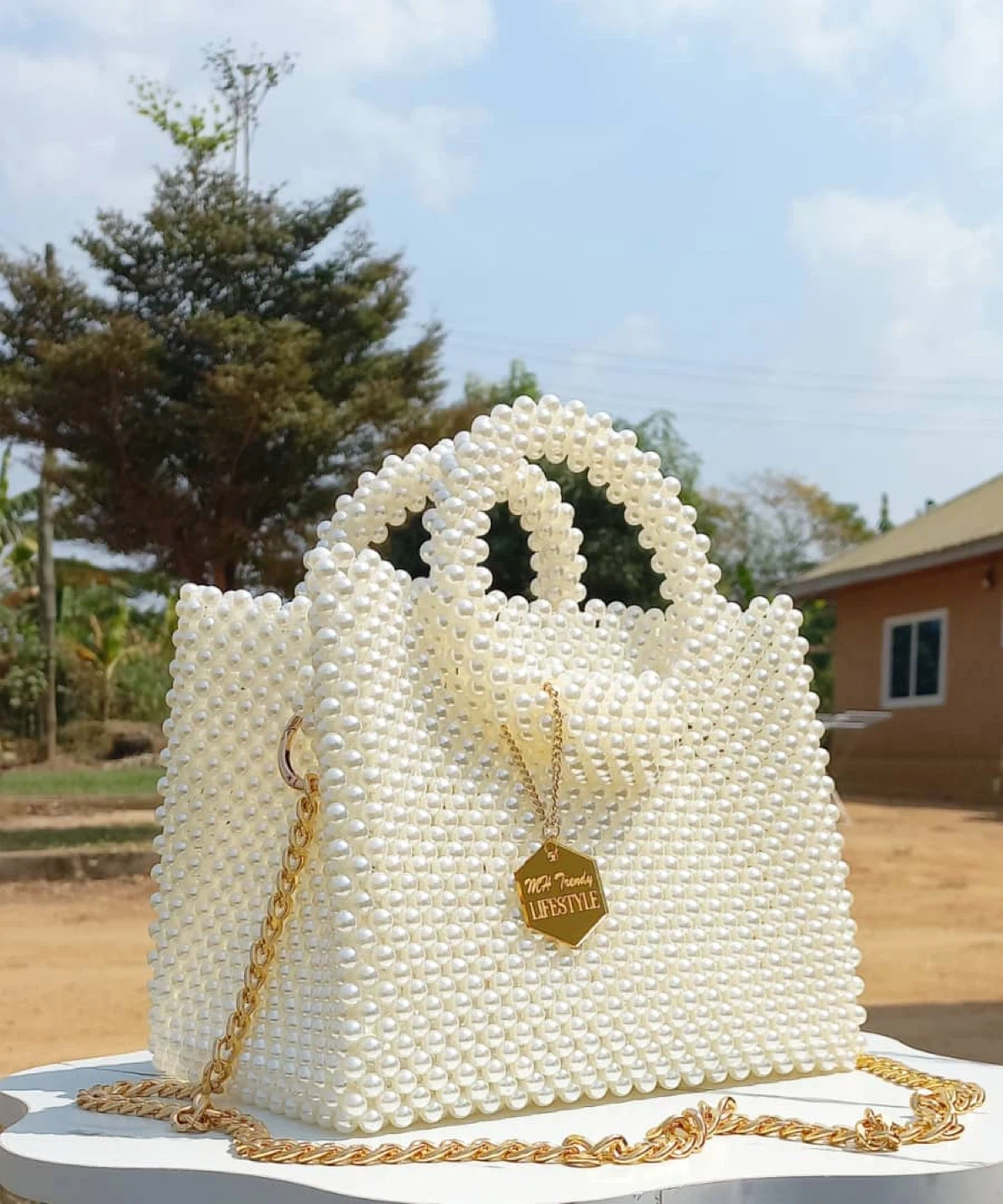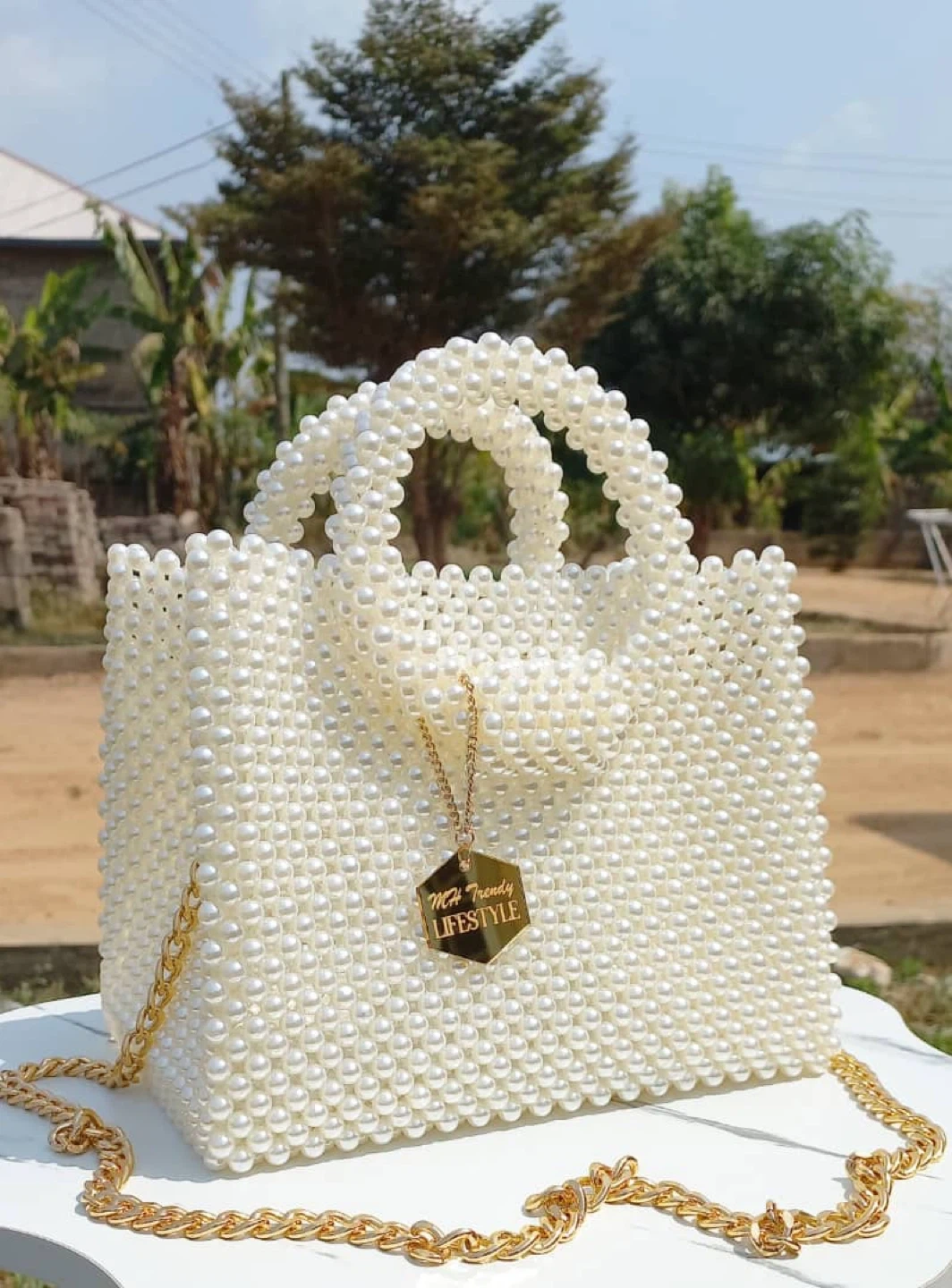 10Check out this beautiful beaded pearl bag from MH Trendy Lifestyle! It features a gold-tone chain and a unique, eye-catching design. Perfect for adding a touch of elegance to any outfit