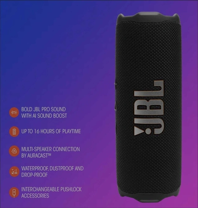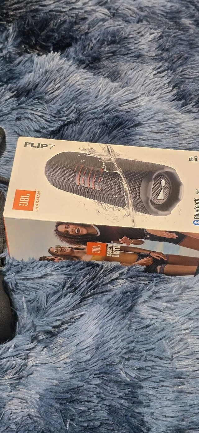 Immerse yourself in powerful audio with this used JBL Flip 7 portable Bluetooth speaker, delivering bold JBL Pro Sound in a compact, waterproof design, perfect for any adventure. Key Features: Bold JBL Pro Sound with AI Sound Boost, Up to 16 hours of playtime, Waterproof, dustproof, and drop-proof design. I'm selling it because I upgraded to a larger system, and it's time for this awesome speaker to find a new home. If you're seeing this ad, the JBL Flip 7 is still available.