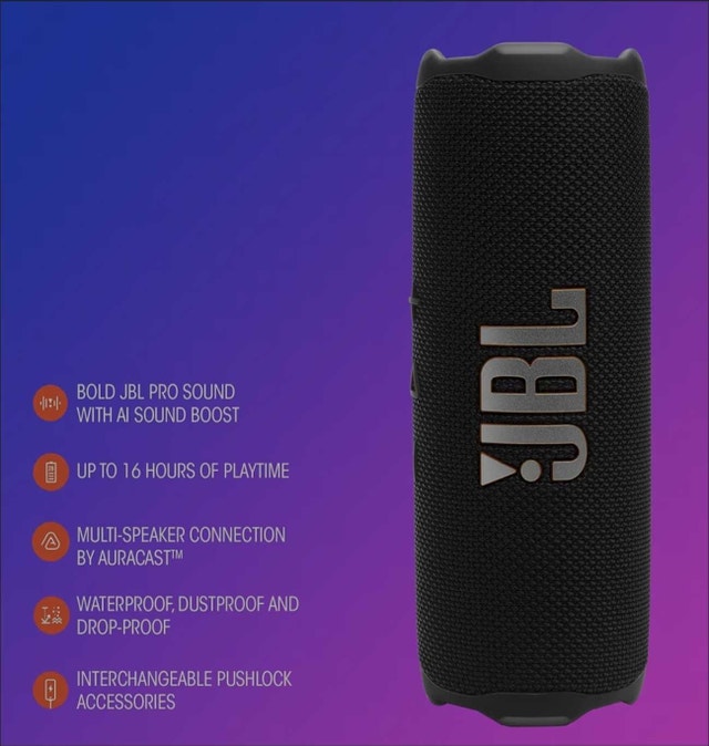 Immerse yourself in powerful audio with this used JBL Flip 7 portable Bluetooth speaker, delivering bold JBL Pro Sound in a compact, waterproof design, perfect for any adventure. Key Features: Bold JBL Pro Sound with AI Sound Boost, Up to 16 hours of playtime, Waterproof, dustproof, and drop-proof design. I'm selling it because I upgraded to a larger system, and it's time for this awesome speaker to find a new home. If you're seeing this ad, the JBL Flip 7 is still available.