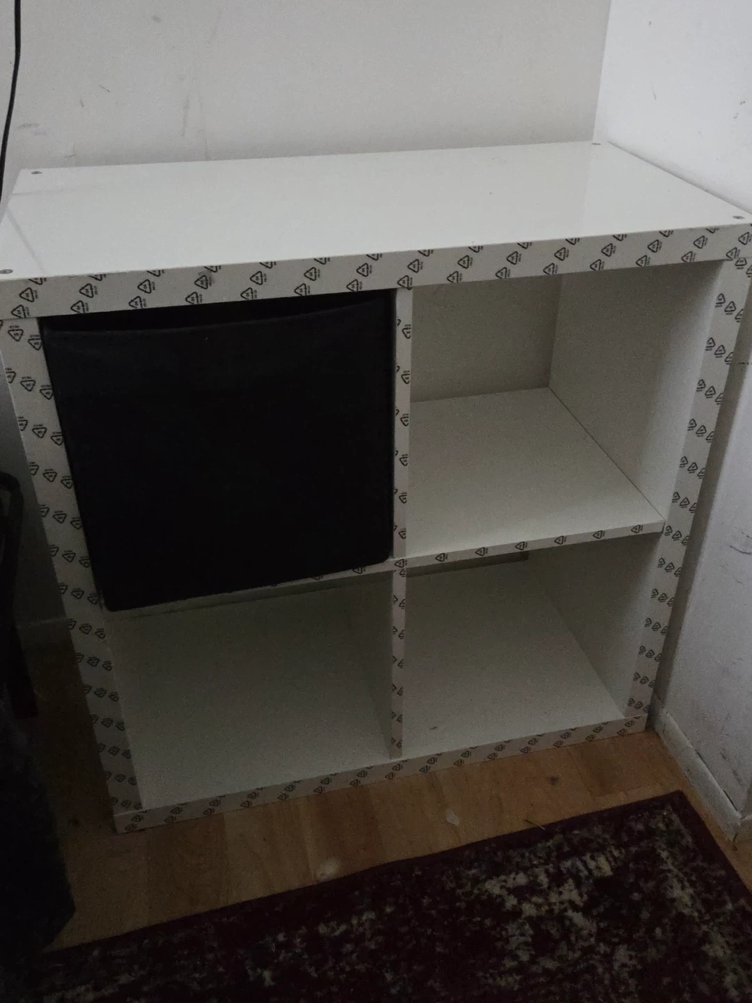 Buy & SellWhite 4-Cube Storage Organizer with Black Insert IKEAWhite 4-Cube Storage Organizer with Black Insert IKEA$25This white 4-cube storage unit has a decorative trim along the edges. It includes one black fabric bin. Perfect for organizing books or small items!ConditionGoodWHERE TO MEETCheck LocationView MapSELLERverifiedEmAstoria1314 reviews0 chats·0 favorites·32 viewsSEND CHAT TO SELLERHi Em! I’m interested in your listing.Hi Em! I’m interested in your listing.Get the Karrot app to chatSign In to chat