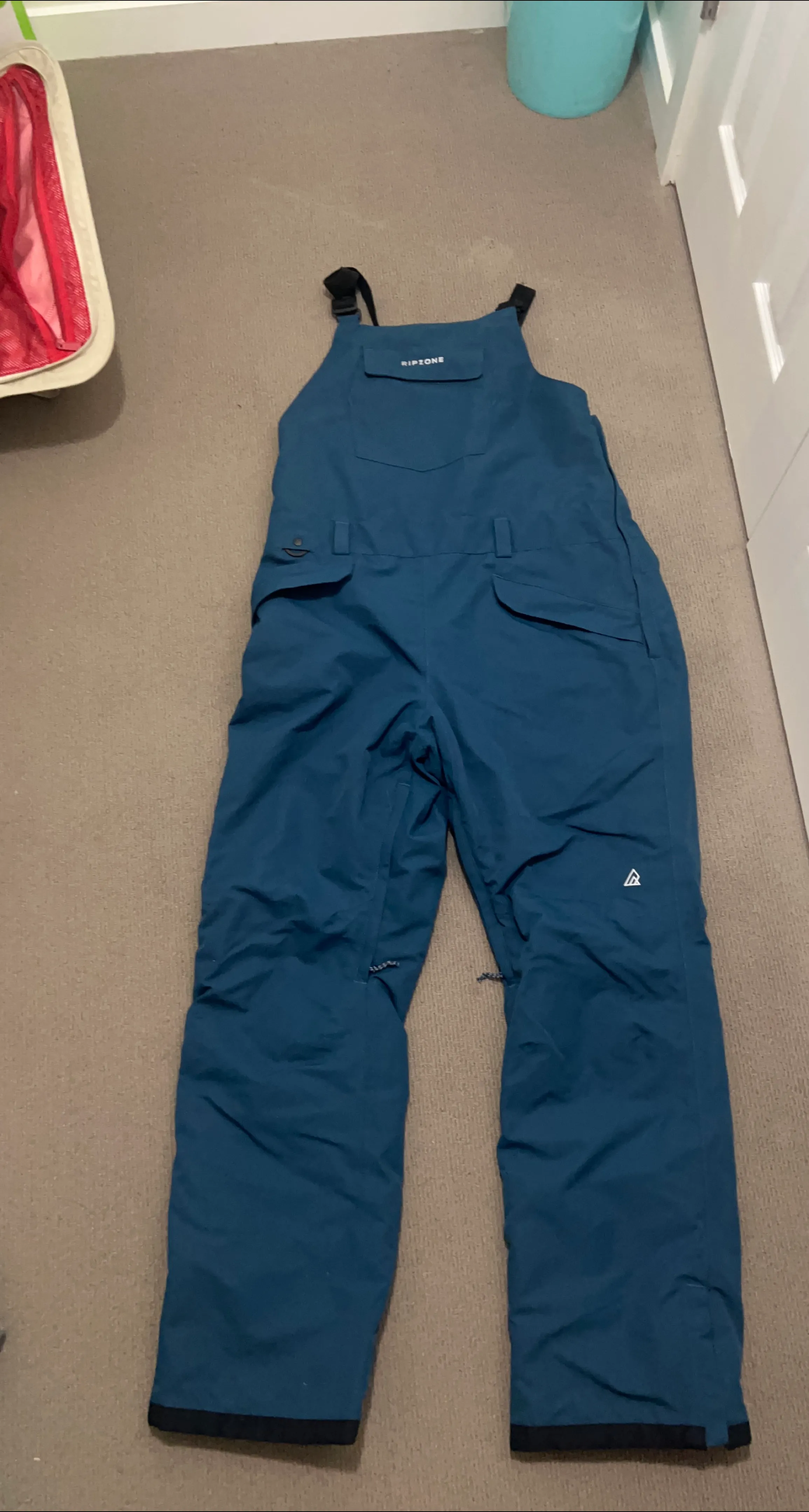 These Ripzone bib pants are great for hitting the slopes. They're a solid blue colour and feature a functional design with multiple pockets. Perfect for keeping warm and dry during winter activities!
