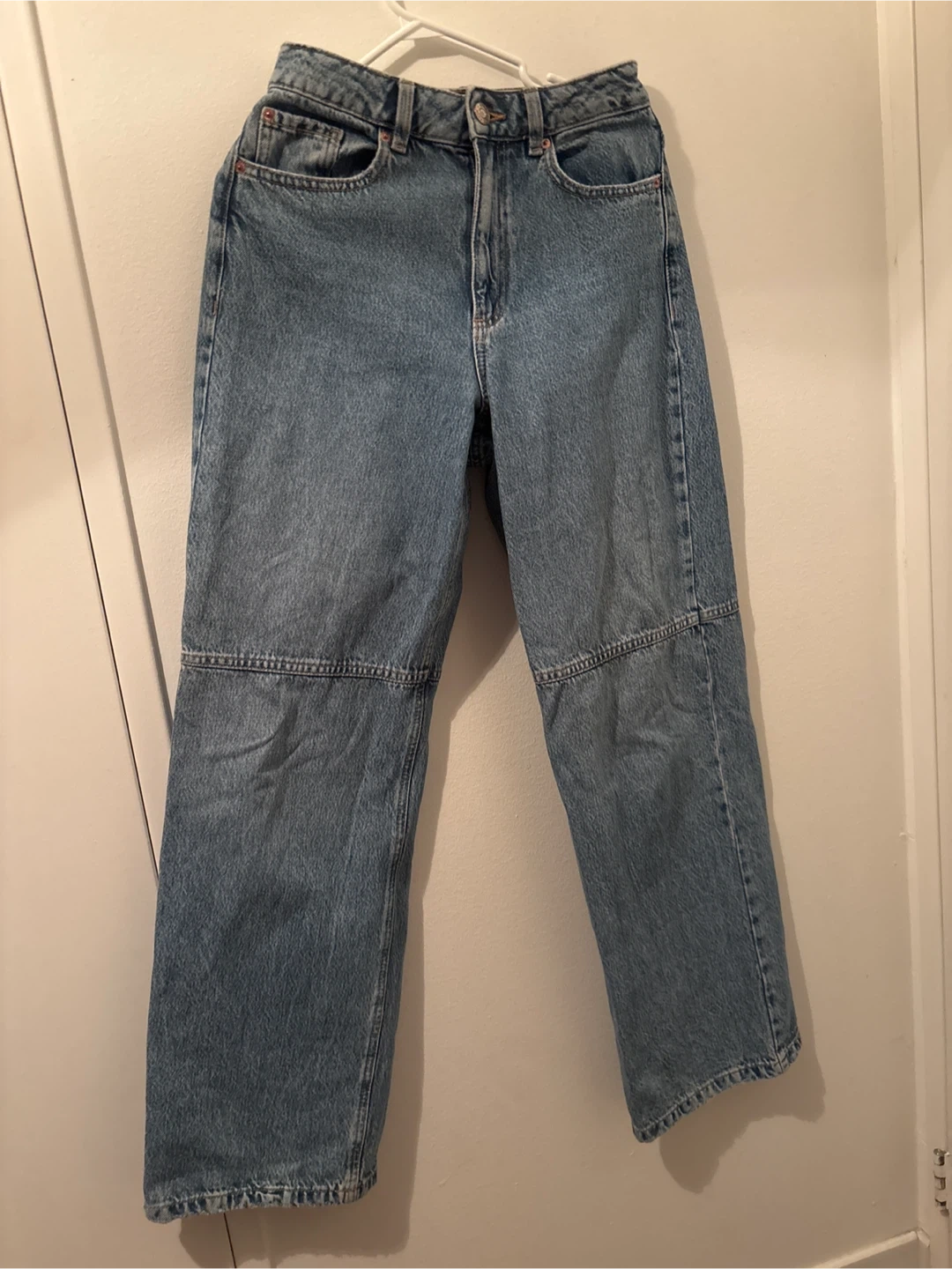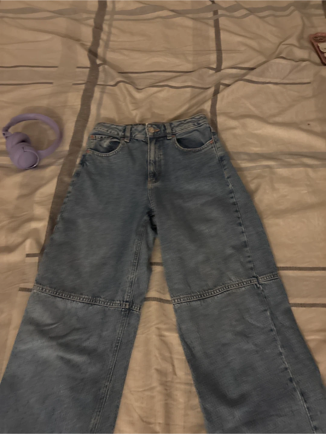 Garage Denim jeans in a light wash. They're a street wide leg style with a comfortable fit. Denim material.