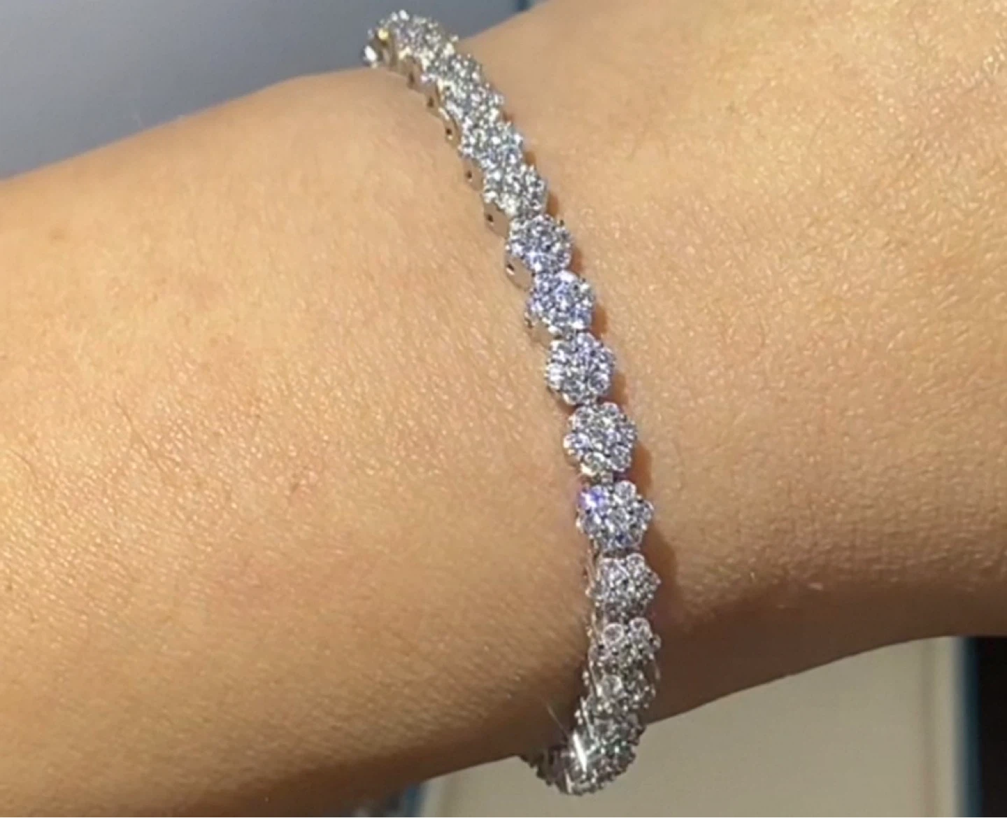 S925 Sterling Silver 18K White Moissanite Diamond Full Diamond Flower Bracelet Simple Small Flower Adjustable Pull-Out Jewelry