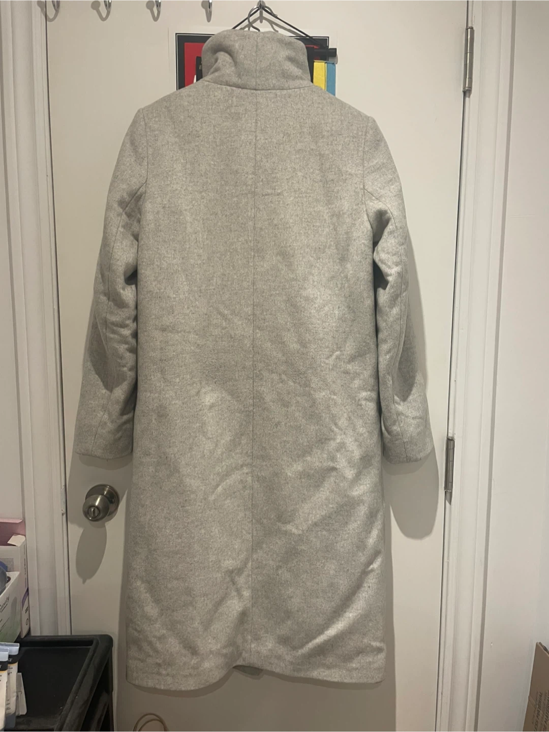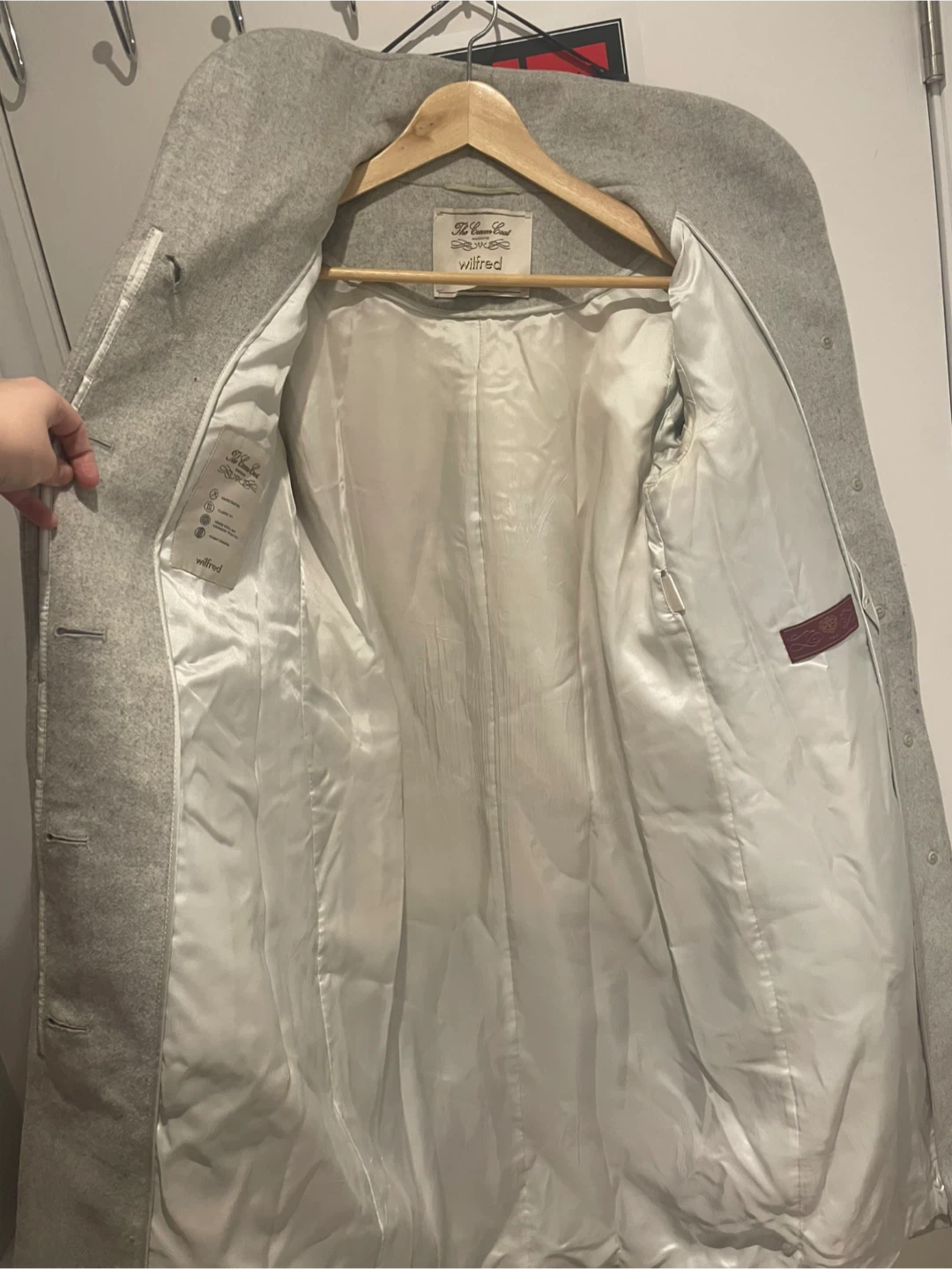 Selling a Wilfred Cocoon Coat in a lovely neutral white! It's a size small and made of a cozy material, perfect for the cooler weather. The coat has a stylish, minimalist design that goes with everything.