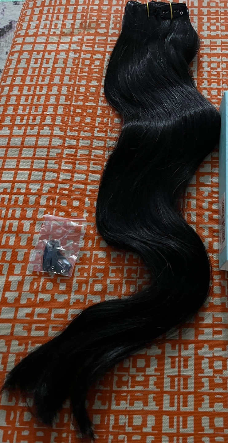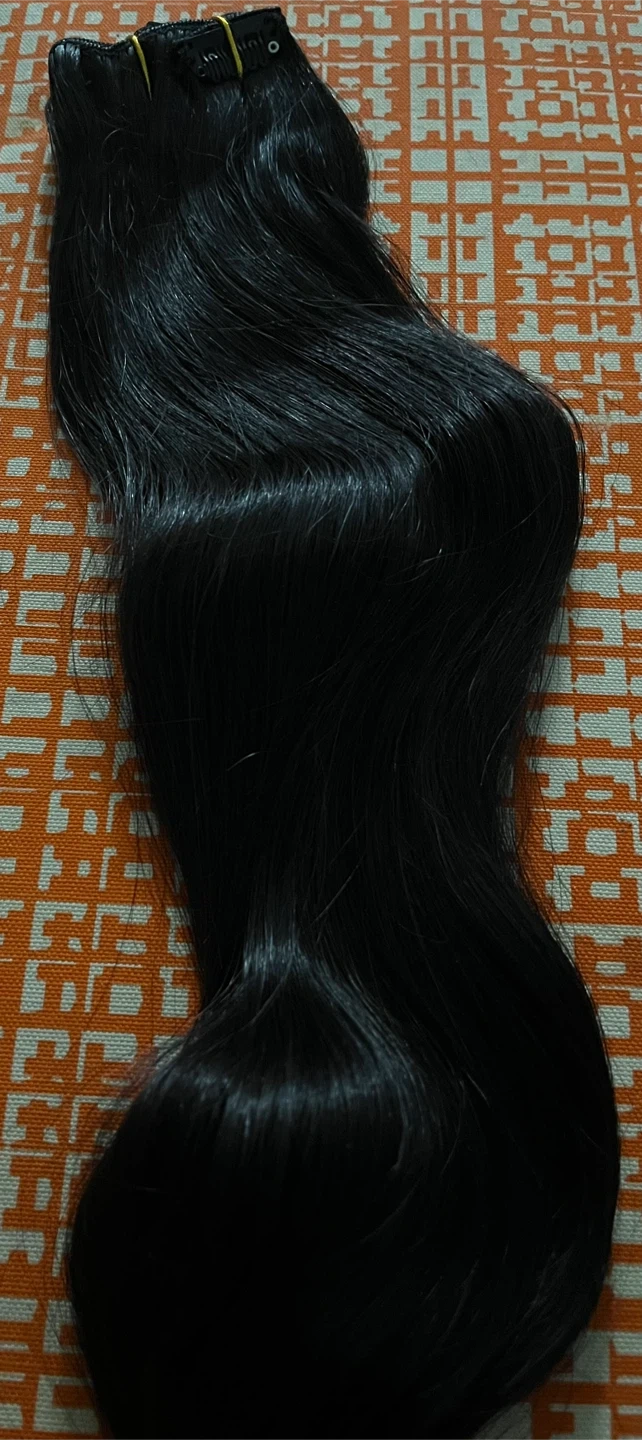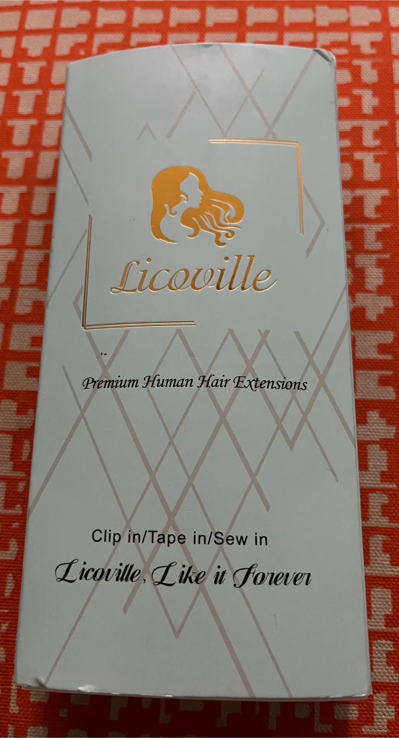 Licoville premium human hair extensions. Clip-in style, 20 inches long, 7 pieces. Human hair material. These are great for adding length or volume!