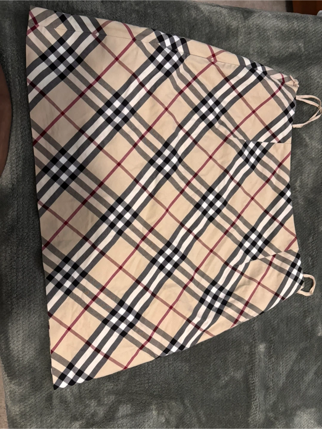 Classic Burberry Nova Check skirt. Features the iconic beige, red, black, and white plaid pattern. Drawstring waist for an adjustable fit.