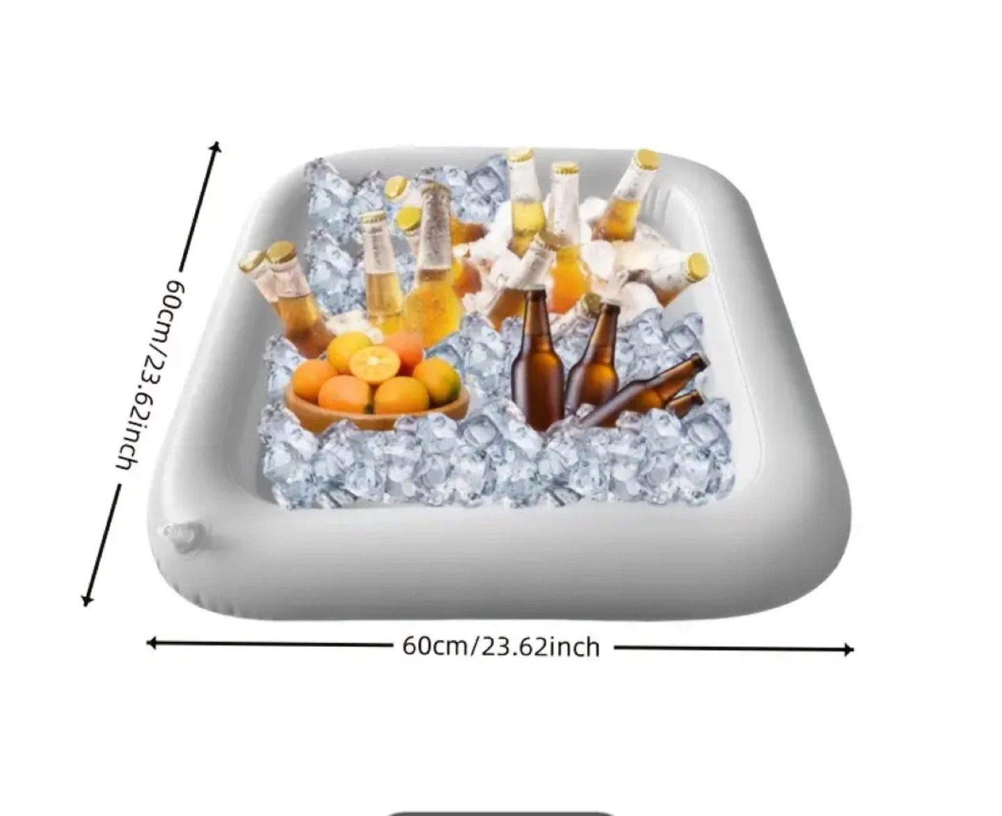 Keep your drinks cool with this inflatable drink cooler! It measures 60cm x 60cm, making it perfect for parties and gatherings. Just add ice and your favourite beverages for a refreshing experience