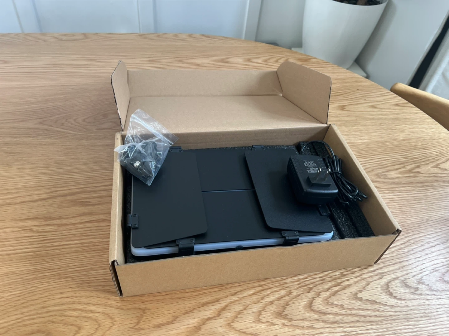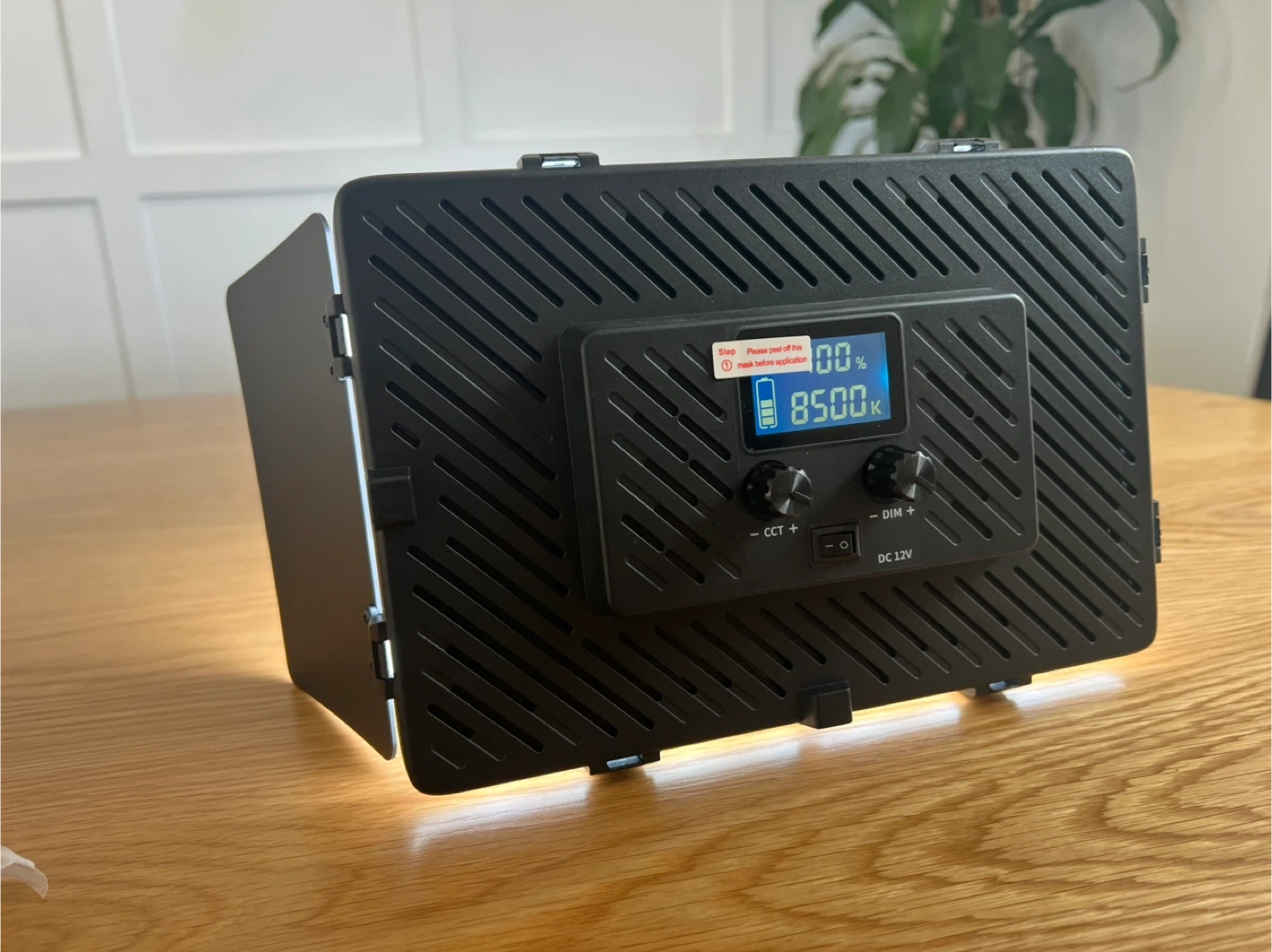 This Unicarp LED panel light provides adjustable brightness and colour temperature. It's great for photography and videography lighting setups. Includes AC adapter and mounting hardware.