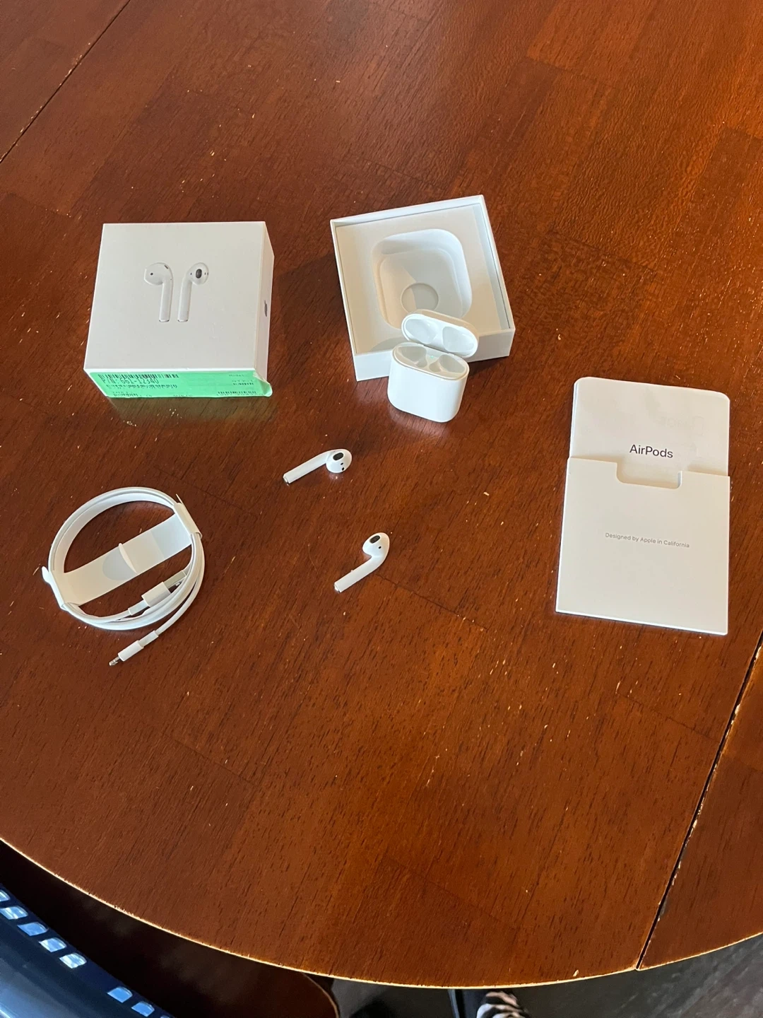 Apple AirPods Pro (1st Gen) with charging case. Includes earbuds, charging case, USB-C to Lightning cable, and original box. Excellent condition and sanitize clean.