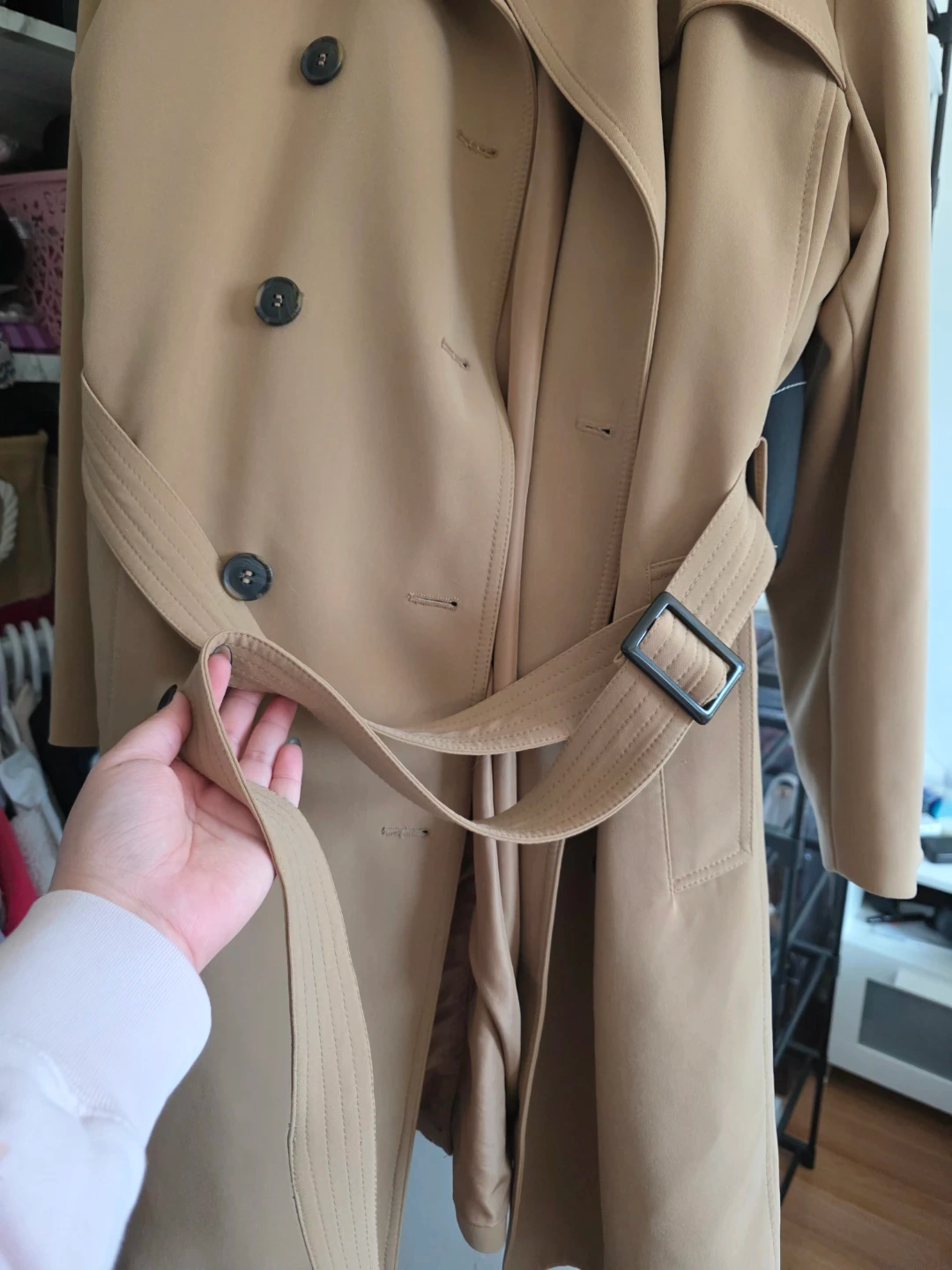 Buy & SellH&M Tan Trench CoatH&M Tan Trench Coat$38Classic H&M tan trench coat in size L. It's double-breasted with a tie belt for a customizable fit. A timeless piece for any wardrobe!ConditionLike newSizeLarge WomenWHERE TO MEETSobeysView MapSELLERverifiedFenWestney Heights731 review1 chats·0 favorites·19 viewsSEND CHAT TO SELLERHi Fen! I’m interested in your listing.Hi Fen! I’m interested in your listing.Get the Karrot app to chatSign In to chat
