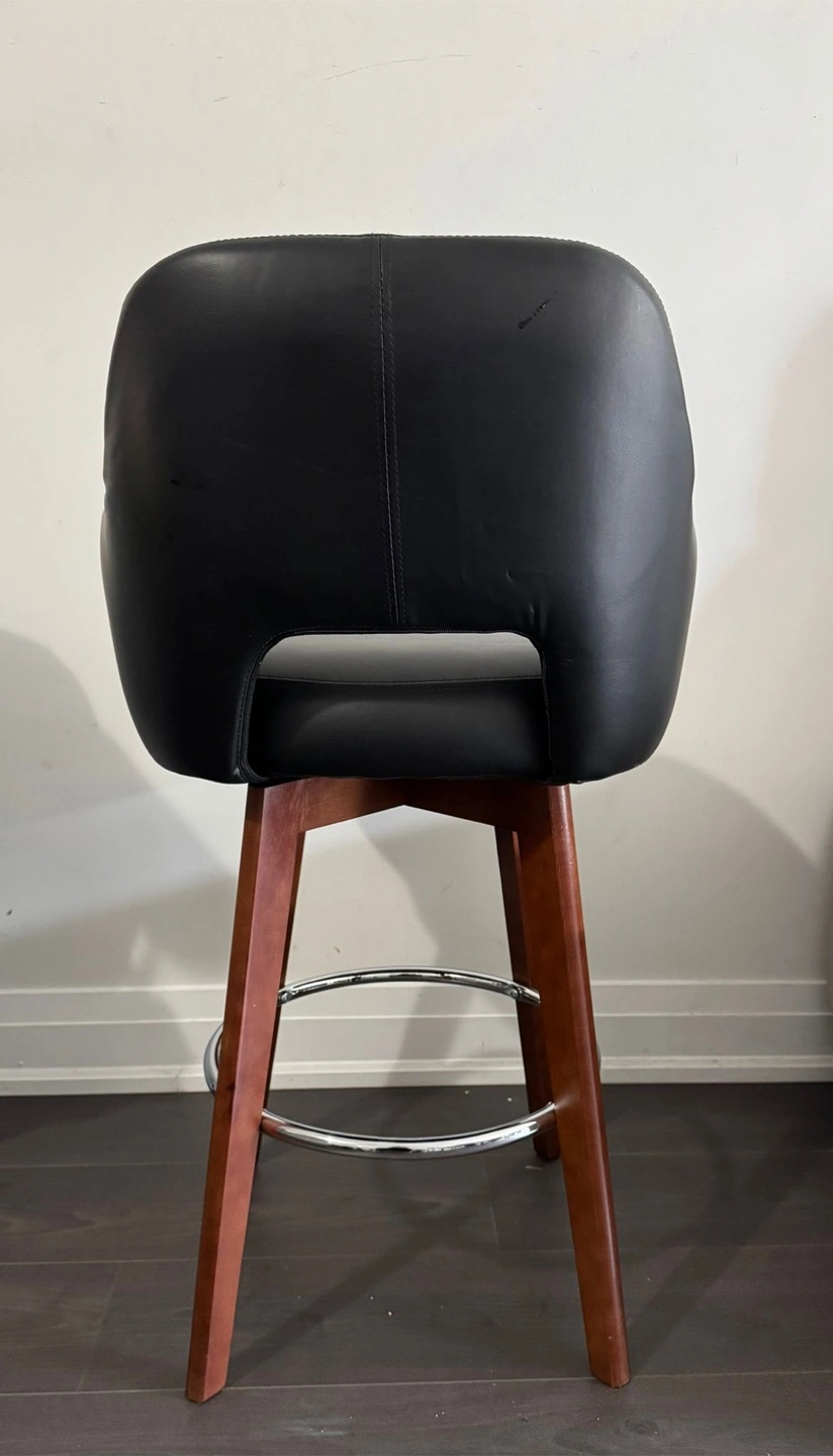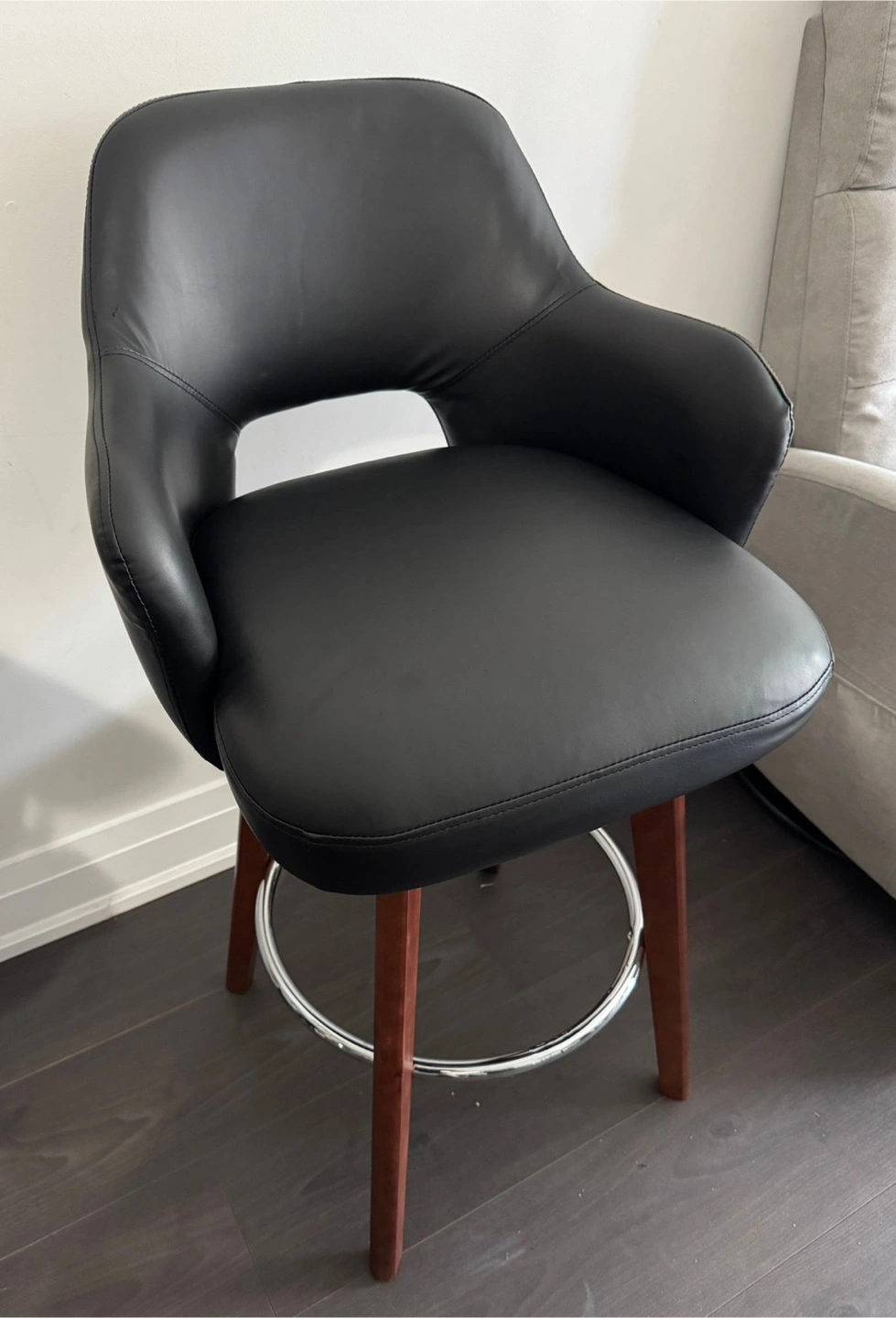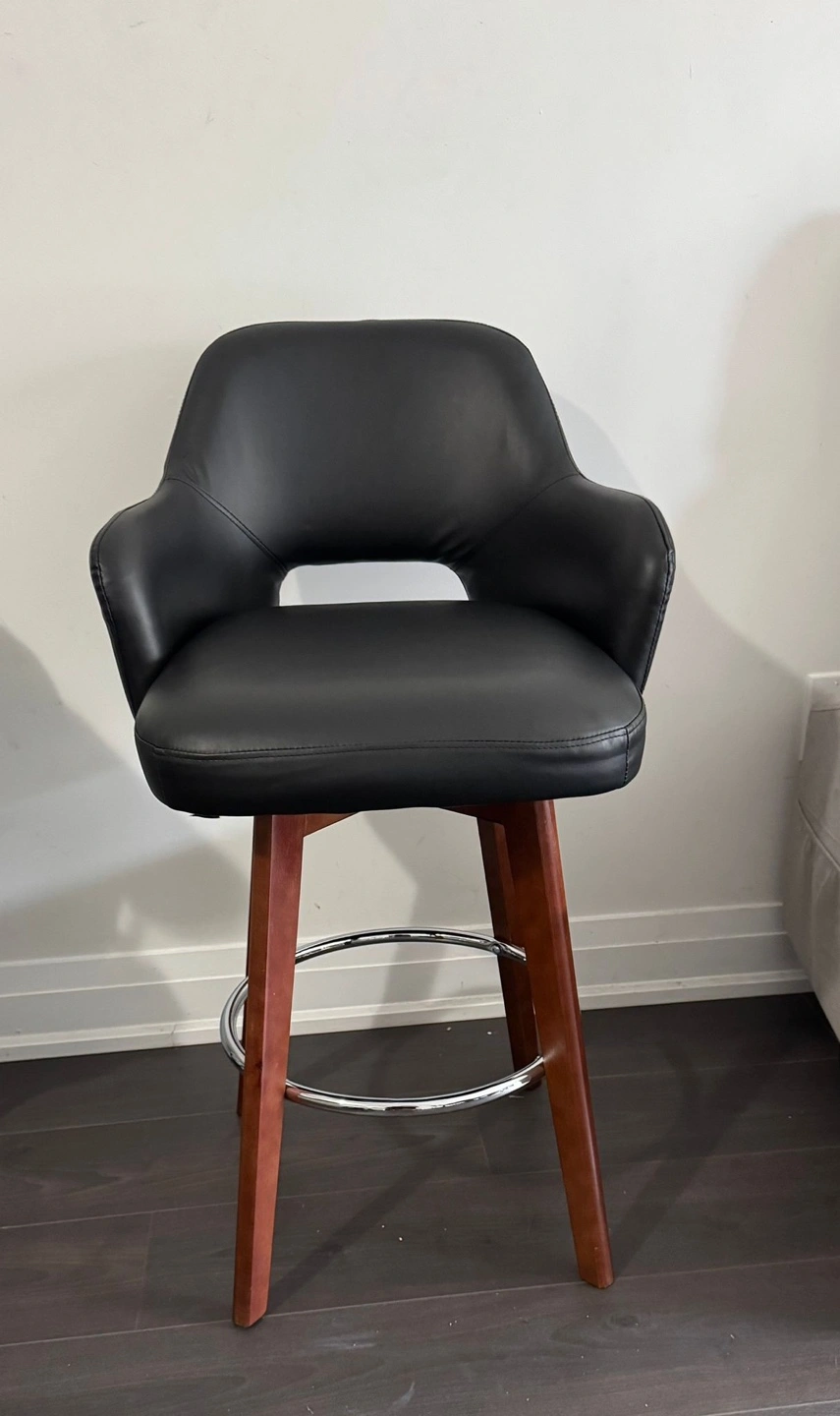 Selling 2 counter swivel bar stool with black PU leather. It has a wooden base and a comfortable design. Never use overall it’s in good condition. Comes in the original box!