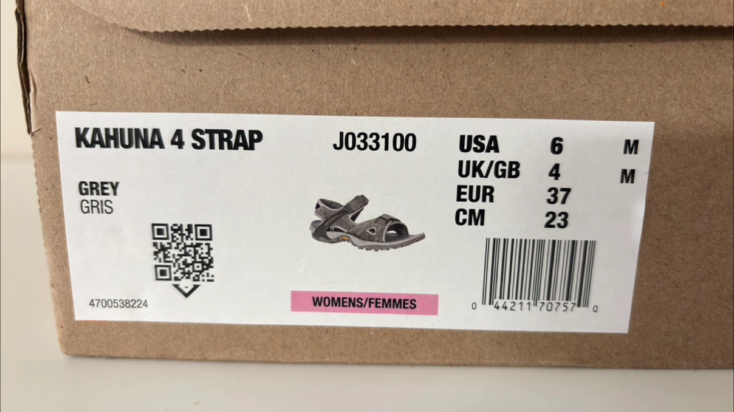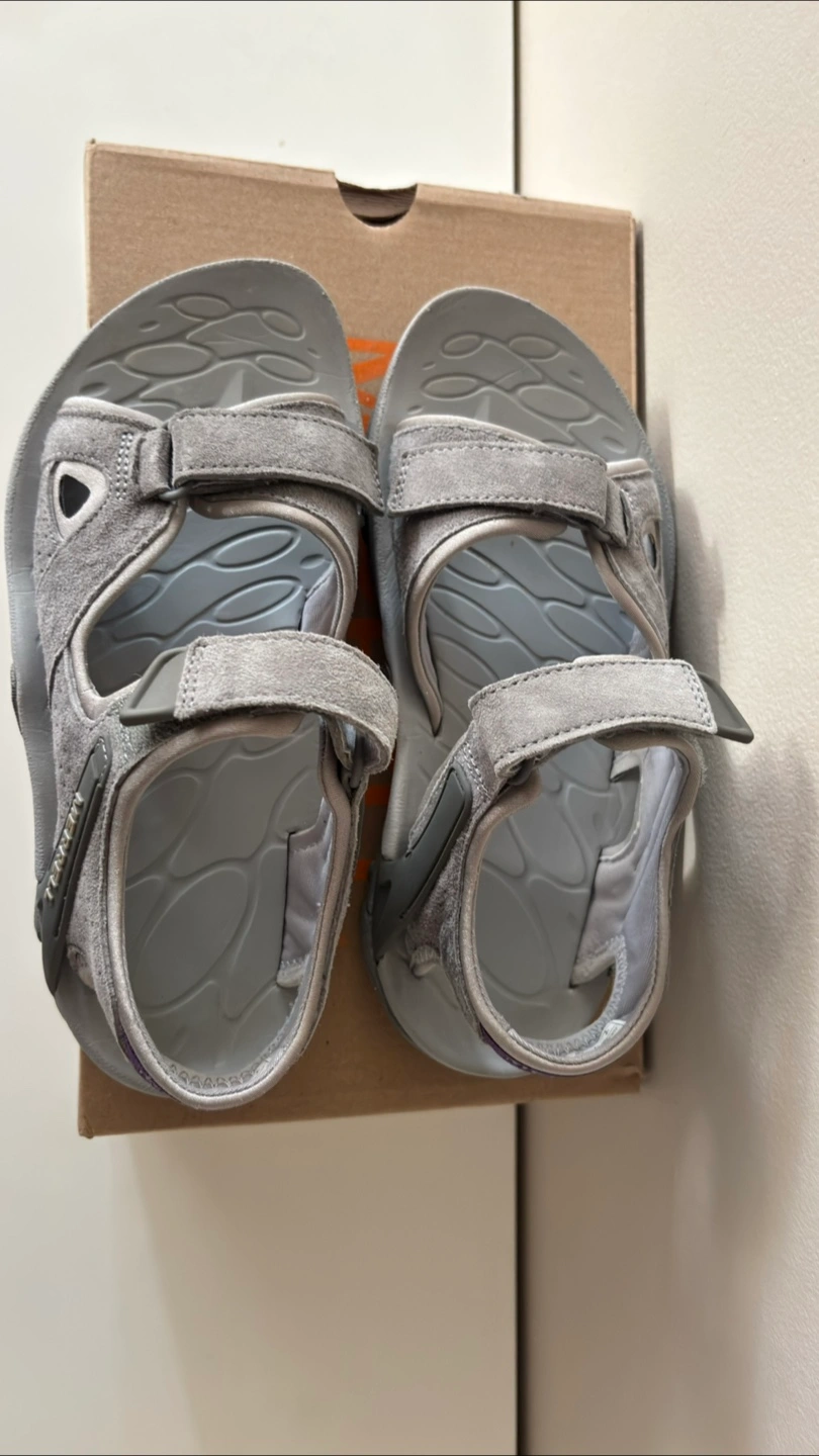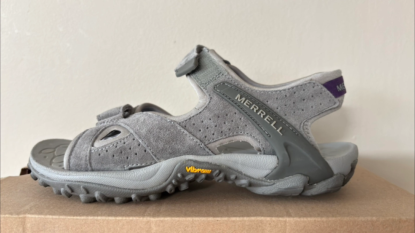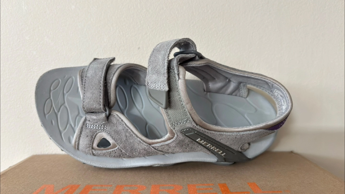 These are Merrell Kahuna 4 Strap sandals in grey. They are a women's size 6.