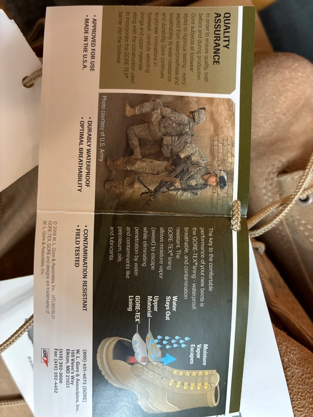 Selling a pair of brand new in the box Bates Army Combat Boots designed for temperate weather. These boots feature Gore-Tex lining for durability and waterproof protection. They are also contamination resistant. The soles are Vibram.