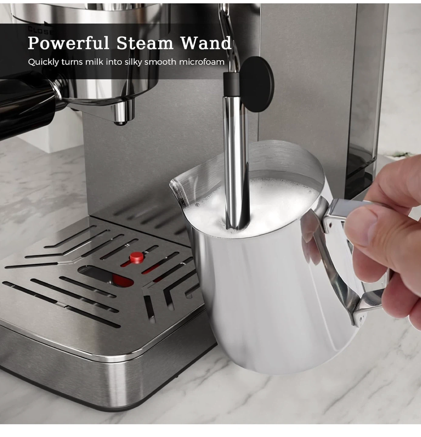 Kismile Espresso Machine with Milk Frother - Stainless Steel