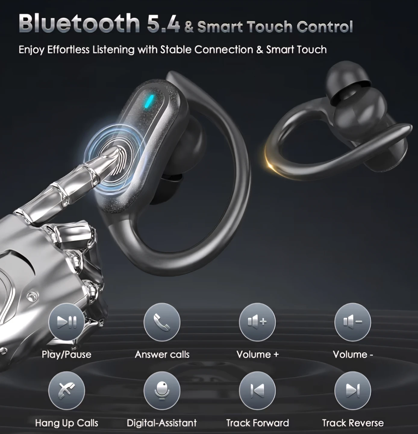 Wireless Earbuds Bluetooth 5.4 Headphones, 54H Playtime Stereo Earphones with Noise Cancelling Mic, IPX7 Waterproof, Fast Charging and Comfort Fit Ear Buds for Fitness/Sports/Workouts/Travel - Black