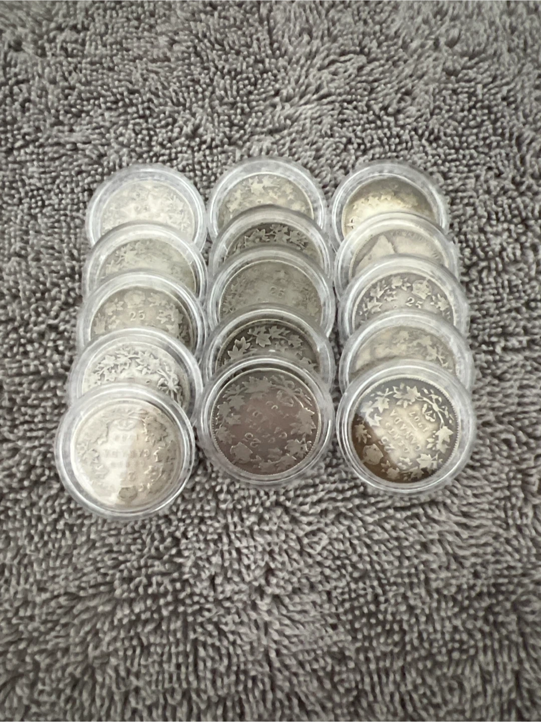.925 Silver 110+ year old Canadian quarters. I have 15 available that are in good condition. Very rare to find these coins where you can still see the dates on them cuz other ones are all worn out but not these ones! They are circulated coins but the nicest ones I have found! A great piece of Canadian history.