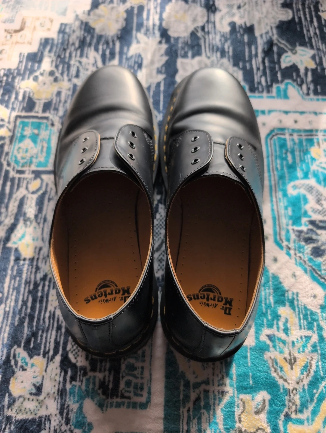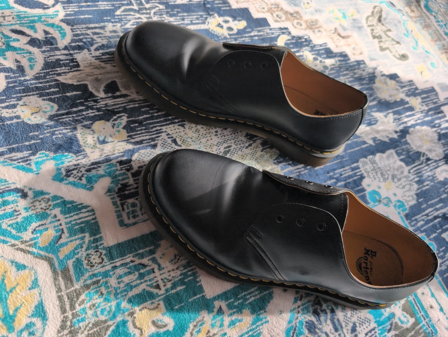 Classic Dr. Martens 1461 shoes in black leather. These are a UK size 11 (US Men's 12, EU 45). They're built with durable Goodyear welt construction. A timeless style that's great for everyday wear.