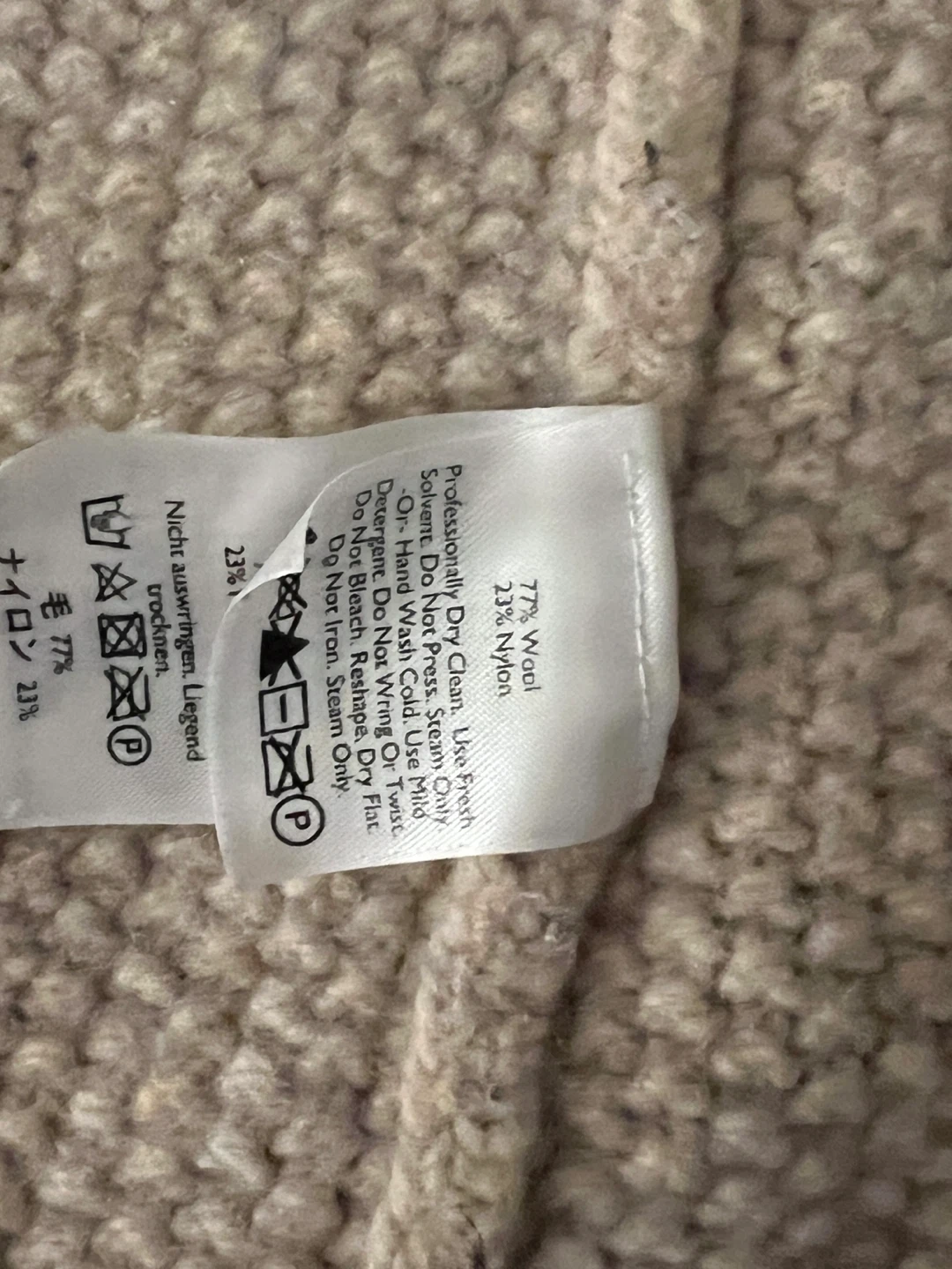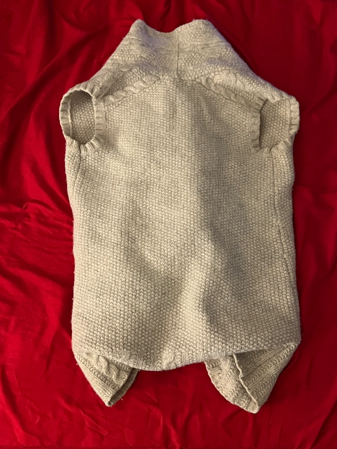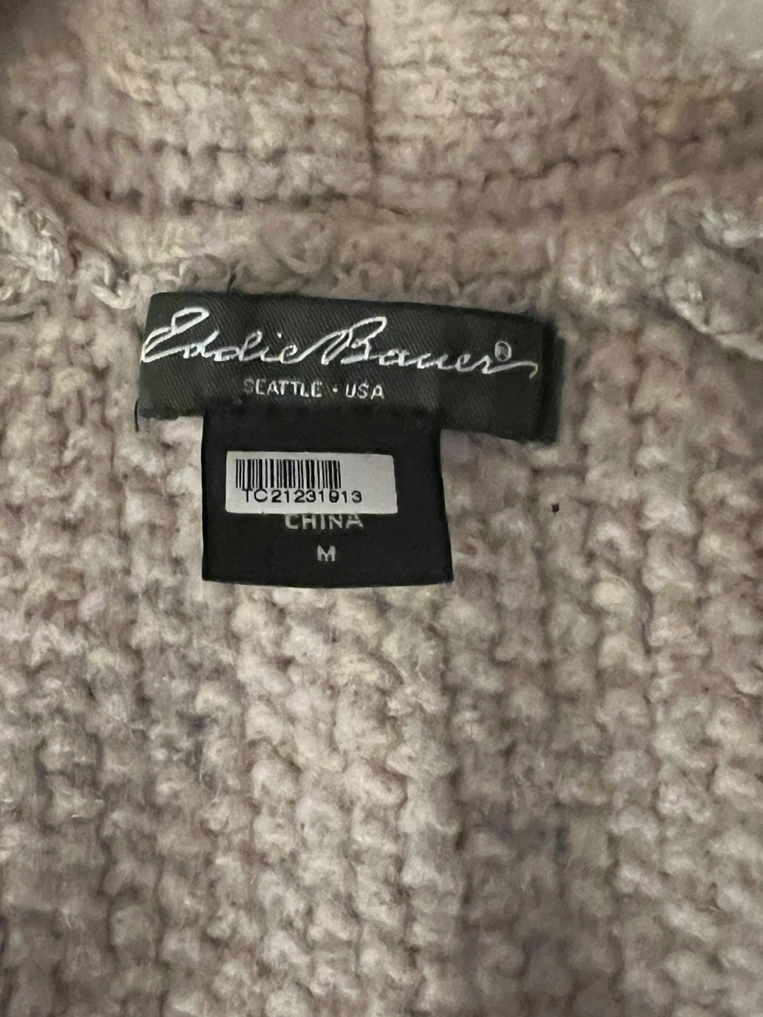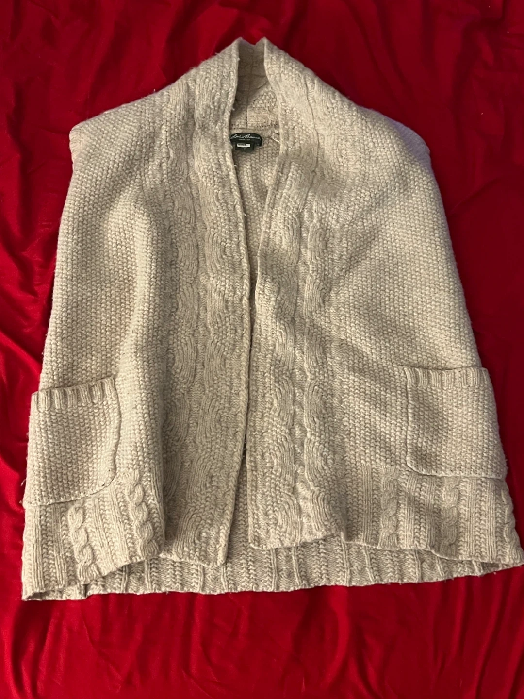 Selling an Eddie Bauer vest in size medium! It's made of 77% wool and 23% nylon. The tag recommends professionally dry cleaning or hand washing with cold water and mild detergent. It's super cozy!