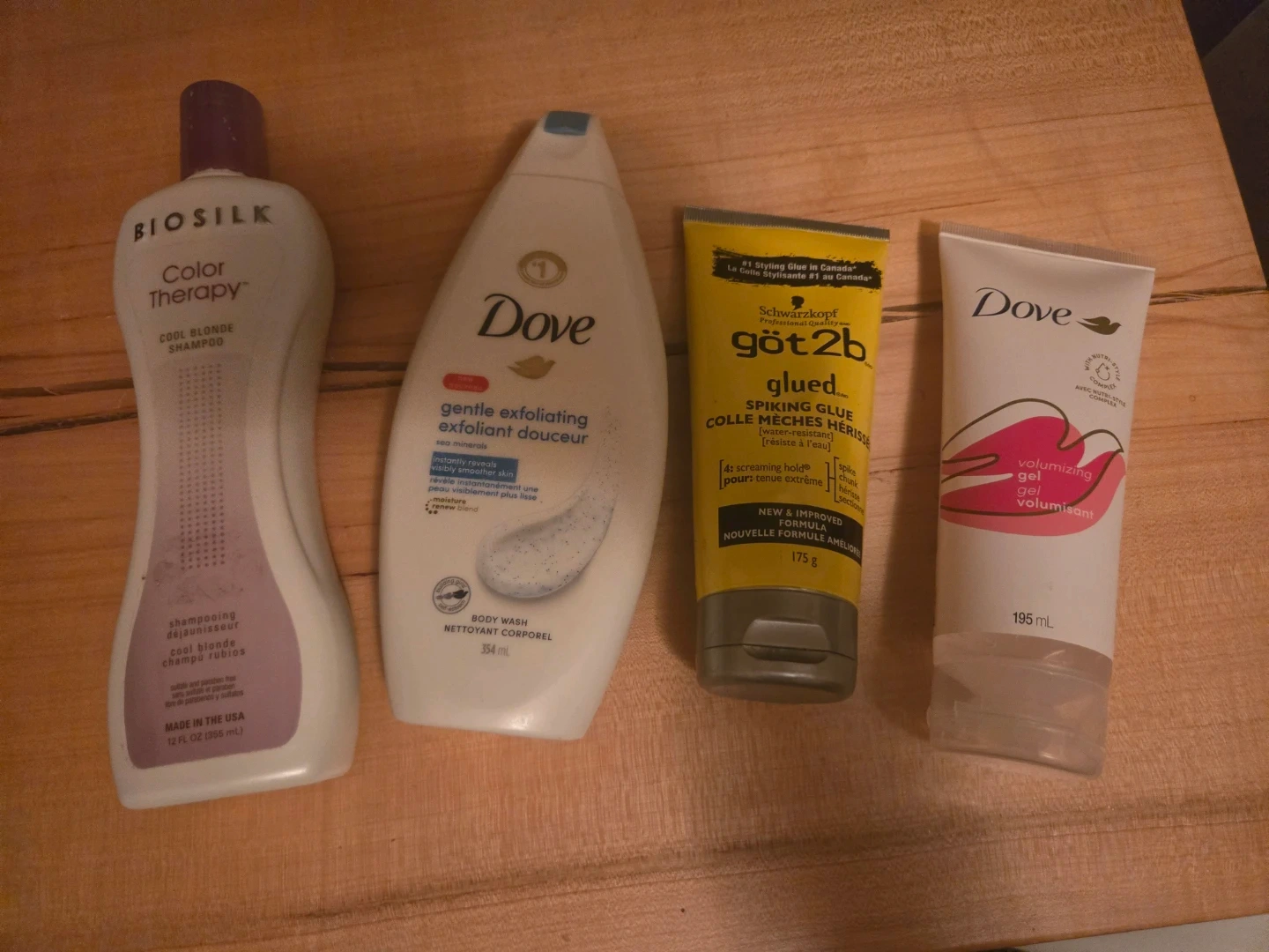 Variety of Hair & Body Products: Biosilk, Dove, Got2b