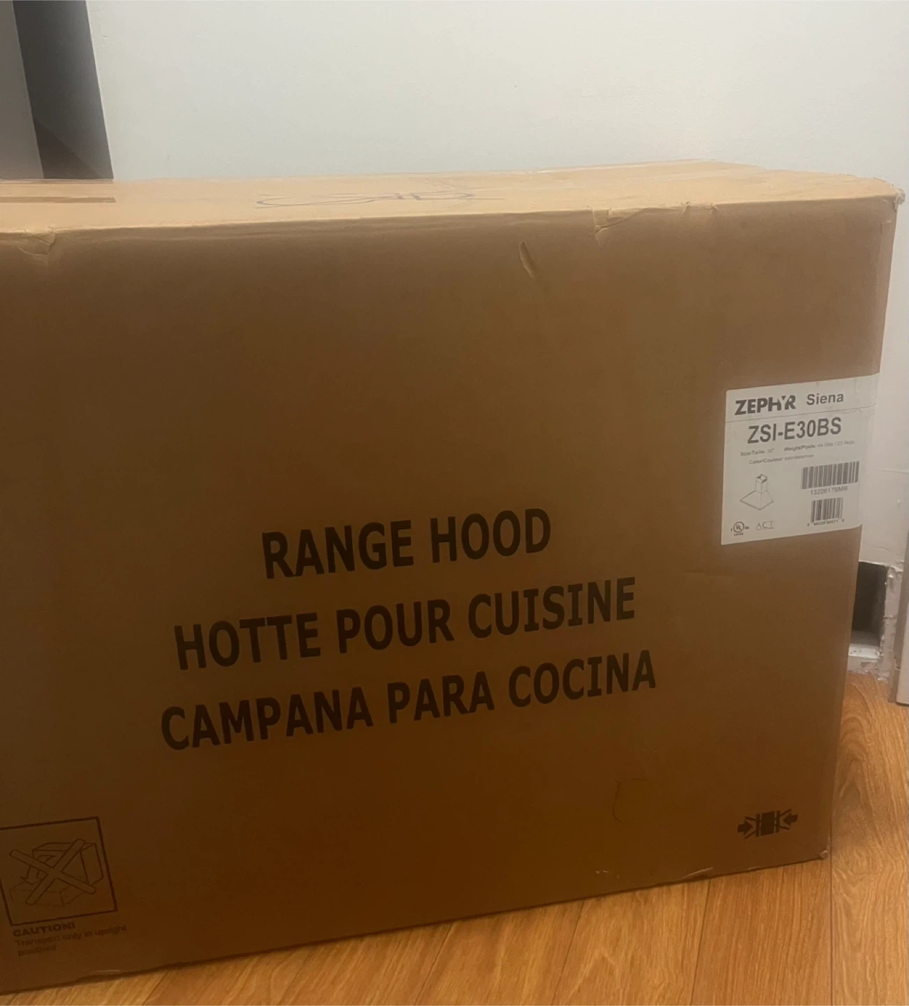 Selling a brand new Zephyr Siena ZSI-E30BS range hood. It's still in the original box and has never been used!