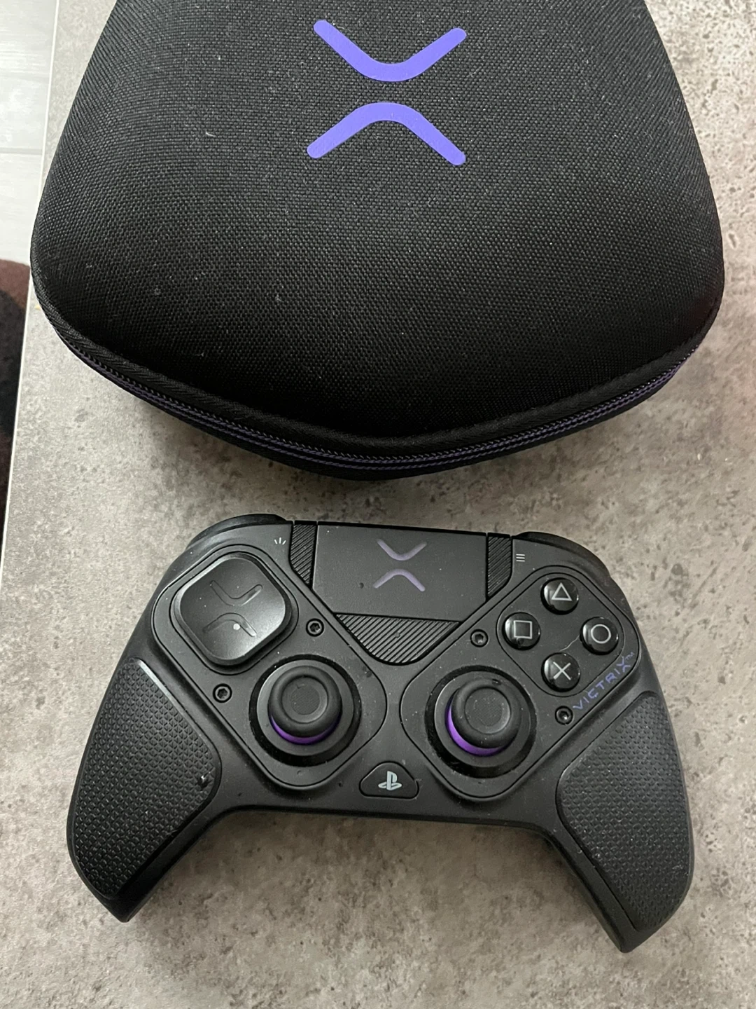 This Victrix Pro BFG controller bundle comes with its carrying case and accessories. It's designed for competitive gaming. This controller is compatible with PS4 and PS5 consoles./ pc computets too.
