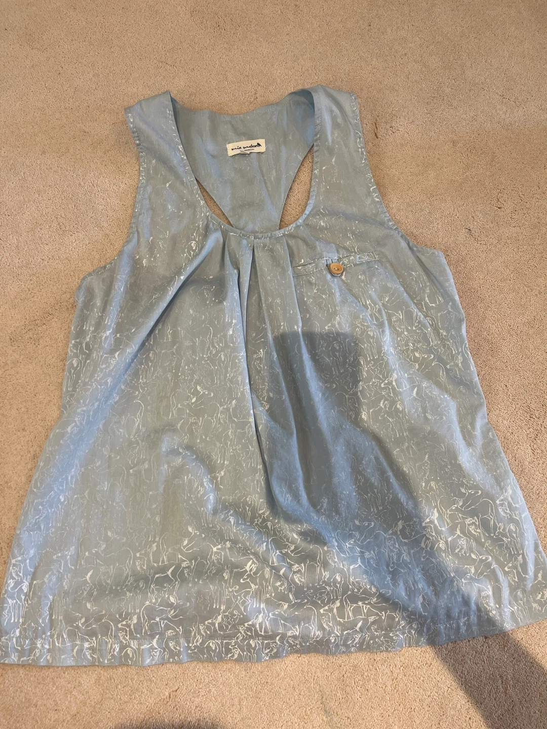 10Cute Mia Melon tank top in a lovely shade of blue! It features a unique design and a comfortable fit, perfect for warm weather. Great for layering or wearing on its own