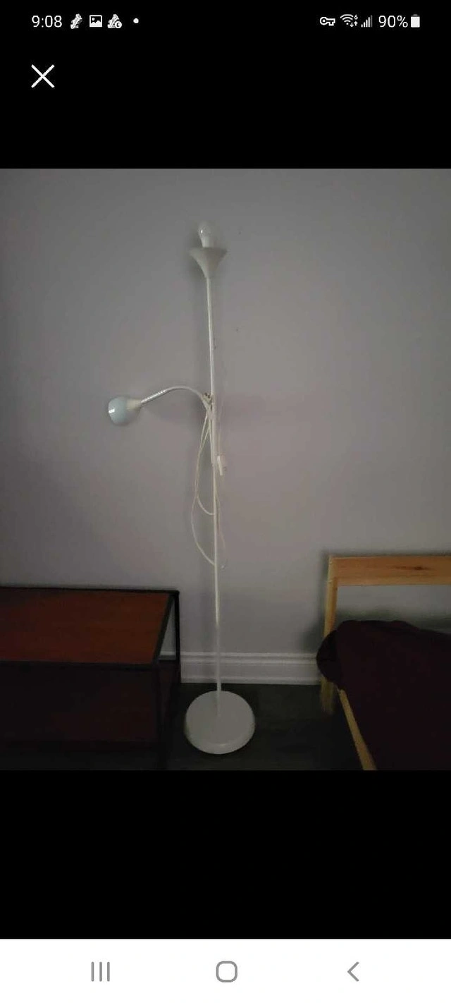 Brighten up your space with this stylish IKEA floor lamp, featuring both ambient and task lighting! This used lamp is in good working condition, perfect for reading or adding a warm glow to any room. * Adjustable reading light * Classic white finish * Sturdy base. If you're seeing this ad, it means it's still available for purchase.