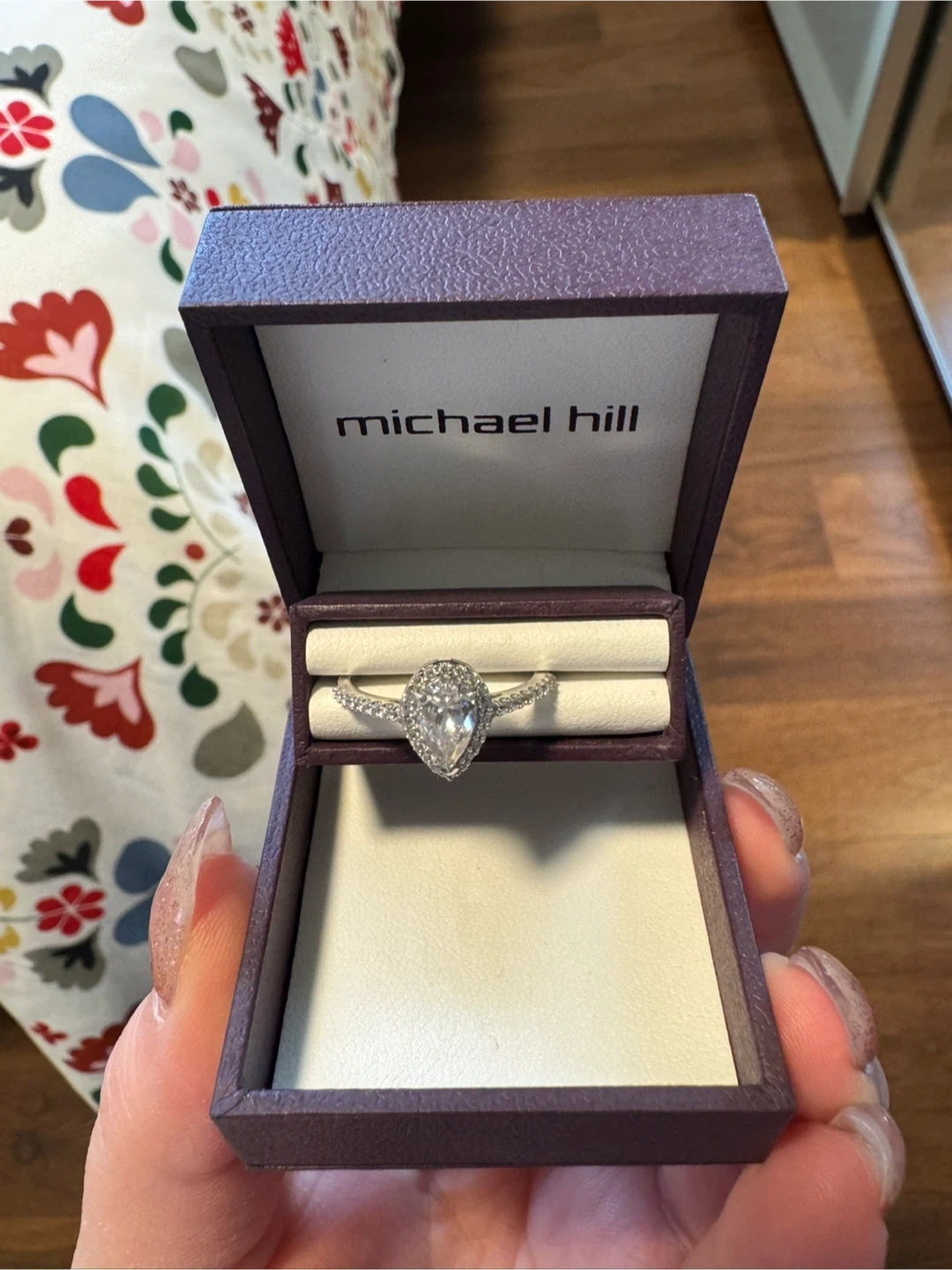 28Selling a beautiful Michael Hill pear halo ring! It comes in its original box. It's a stunning piece that would make a great addition to anyone's jewellery collection. Asking what I paid for