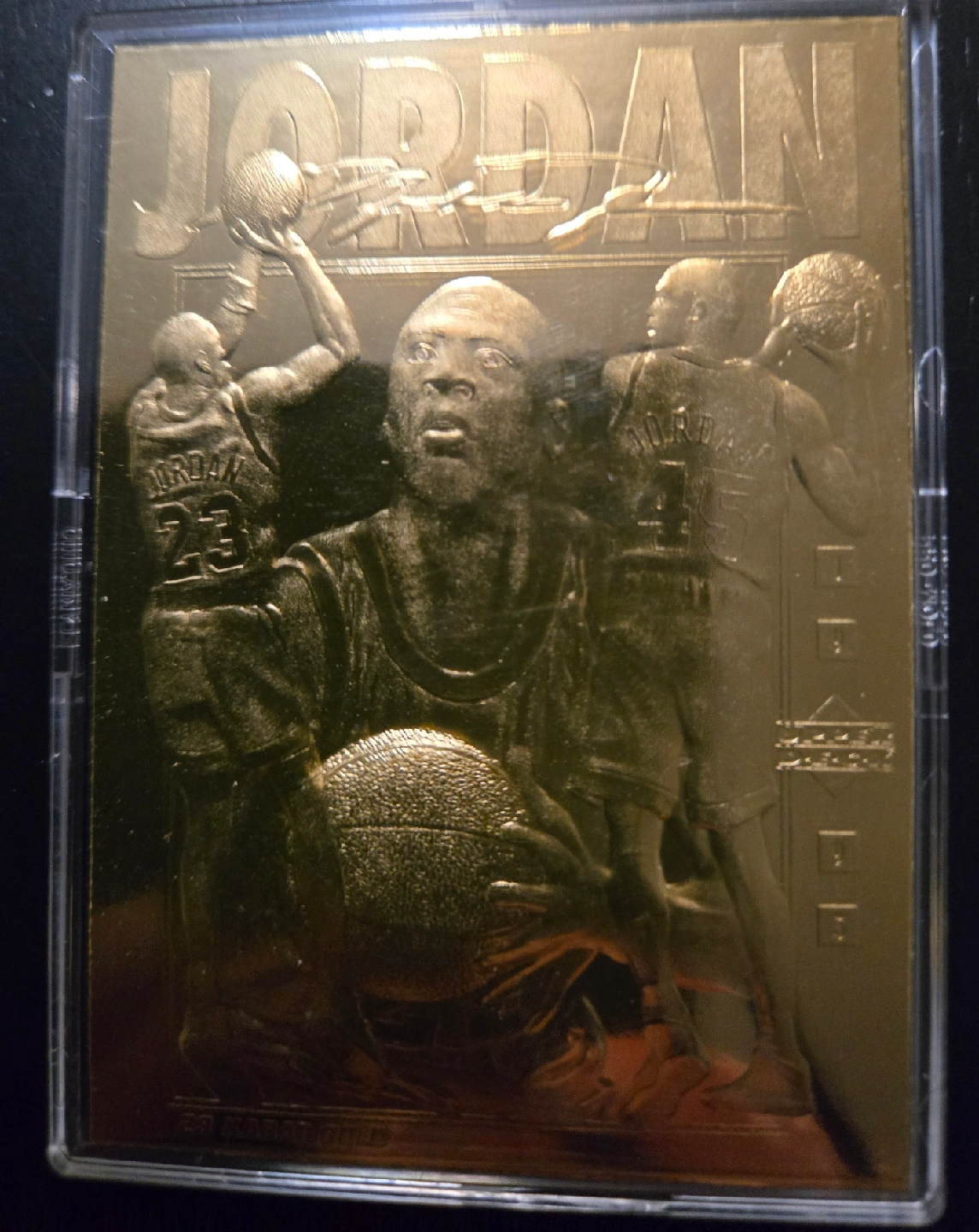 Selling a Michael Jordan Triple Image 23 Karat Gold card 1995. It appears to be numbered 29785 of 50,000. Comes with Certificate of Authenticity. Great for any sports memorabilia collector!