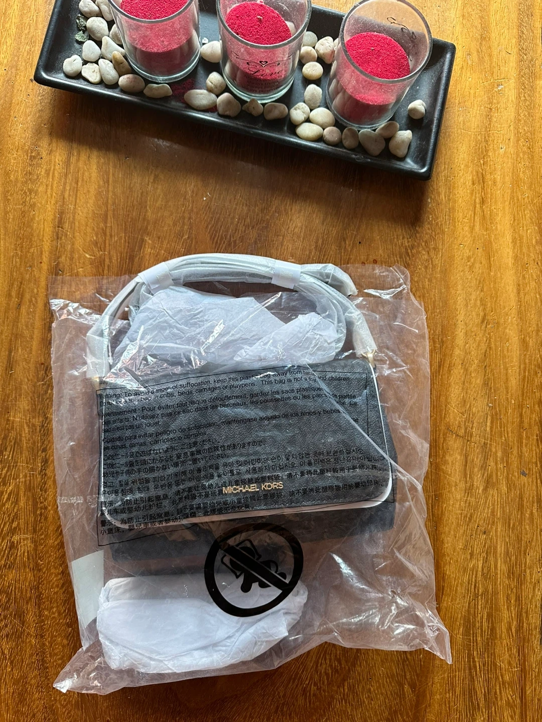 Selling a new Michael Kors crossbody bag in classic black! It's in excellent condition and comes with the original packaging. Perfect for everyday use or a night out. The bag features the iconic MK logo pattern. A stylish and versatile accessory! π― % Authentic $100 FIRM PRICE