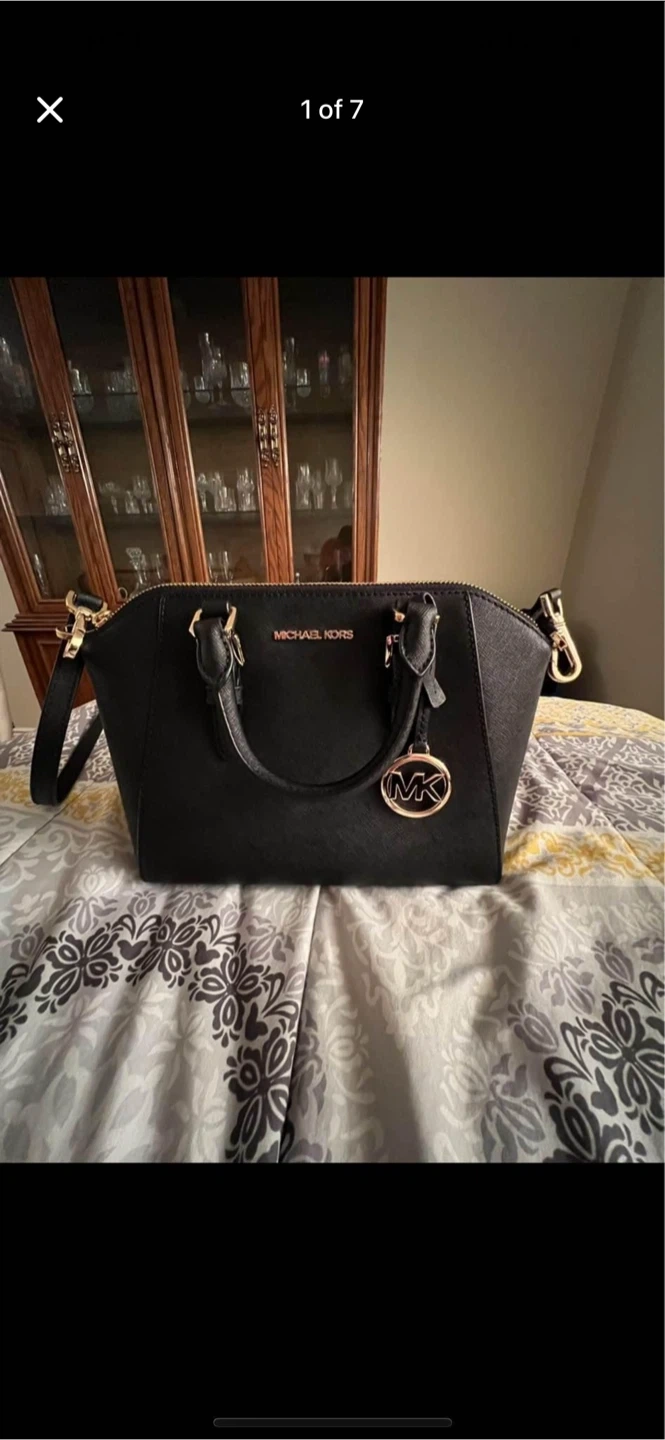 15Selling a Michael Kors black dome satchel. It's in great condition and perfect for everyday use! The bag features gold-tone hardware and a detachable shoulder strap.