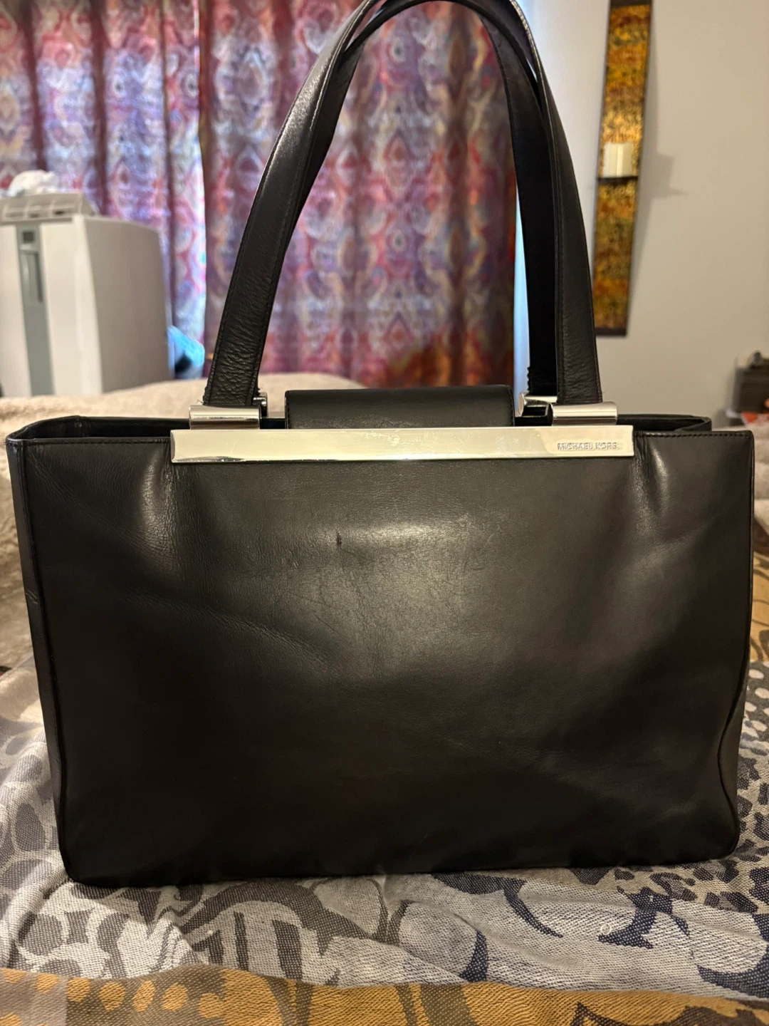 Selling a Michael Kors high end black leather handbag. It's in great condition and has a classic, stylish look. It’s 13.5 inches long and 9 inches tall. Perfect for everyday use! It is a really beautiful and classy handbag! Pick up in Chestermere. If ad is up, it’s available.