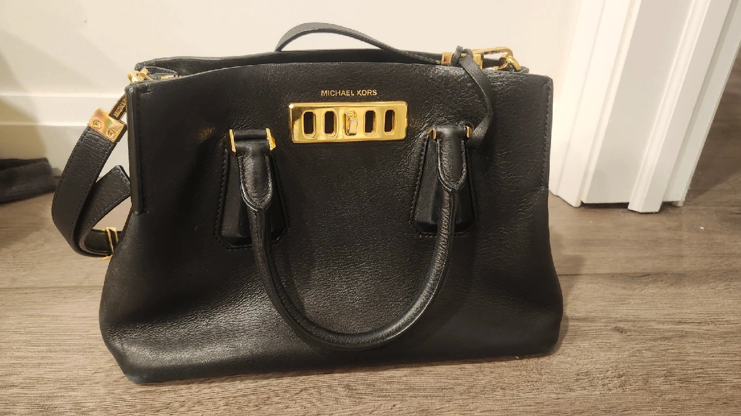 106Selling a stylish Michael Kors handbag in black leather. It's in great condition large shoulder crossover can meet in Etobicoke by Rathburn and Kipling and occasionally downtown by 18 York