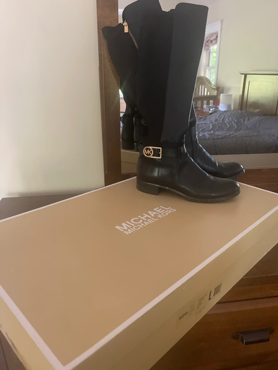 Selling a pair of Michael Kors riding boots in black leather. They're in great condition and come with the original box. Size 8.