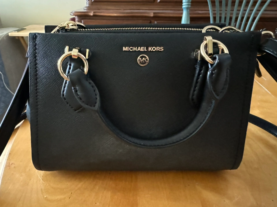 Brand new black, leather purse - never used. Michael Kors MARILYN cross body leather purse. Purchased for $358.00 Asking : $175.00 Central Mississauga - will drive up to 15mins to exchange.