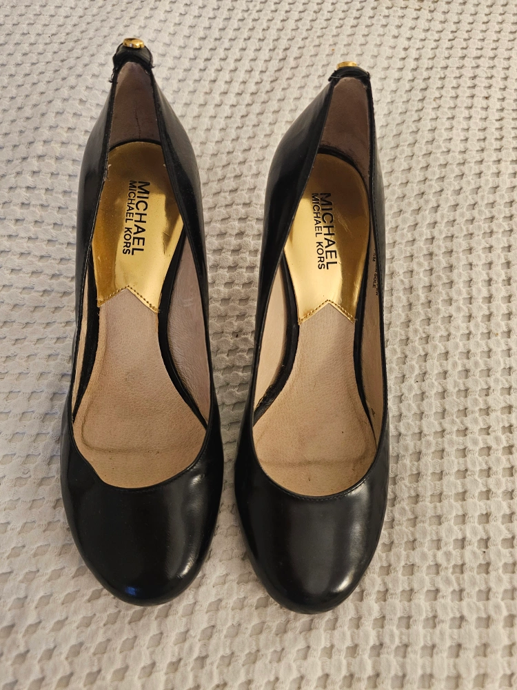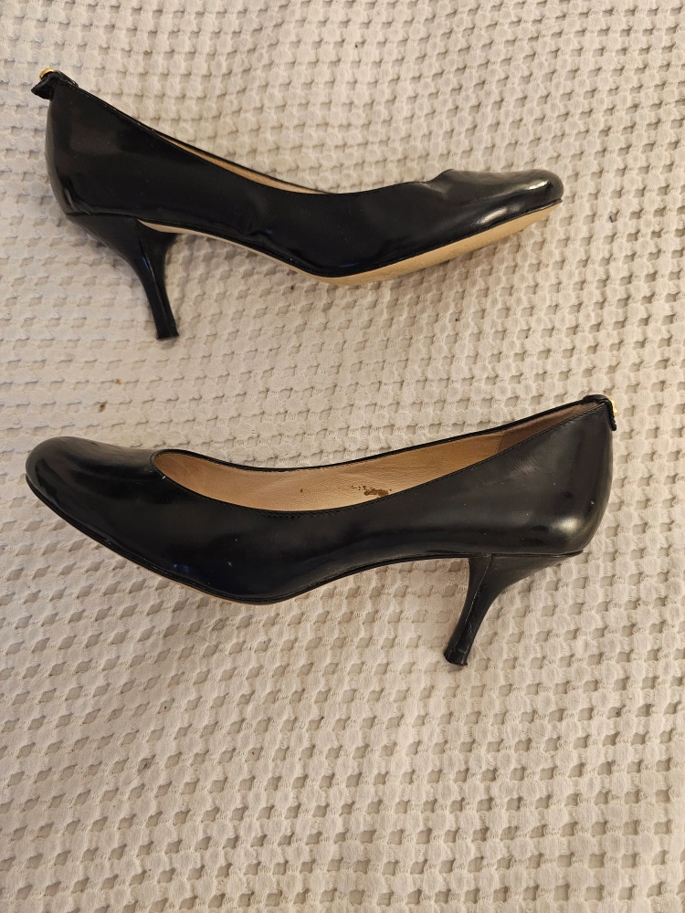 Selling a pair of Michael Kors black patent heels. They're in good condition! I can no longer wear heels. Check out my other postings. No box.