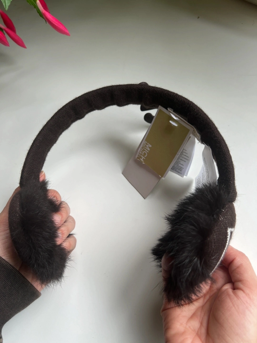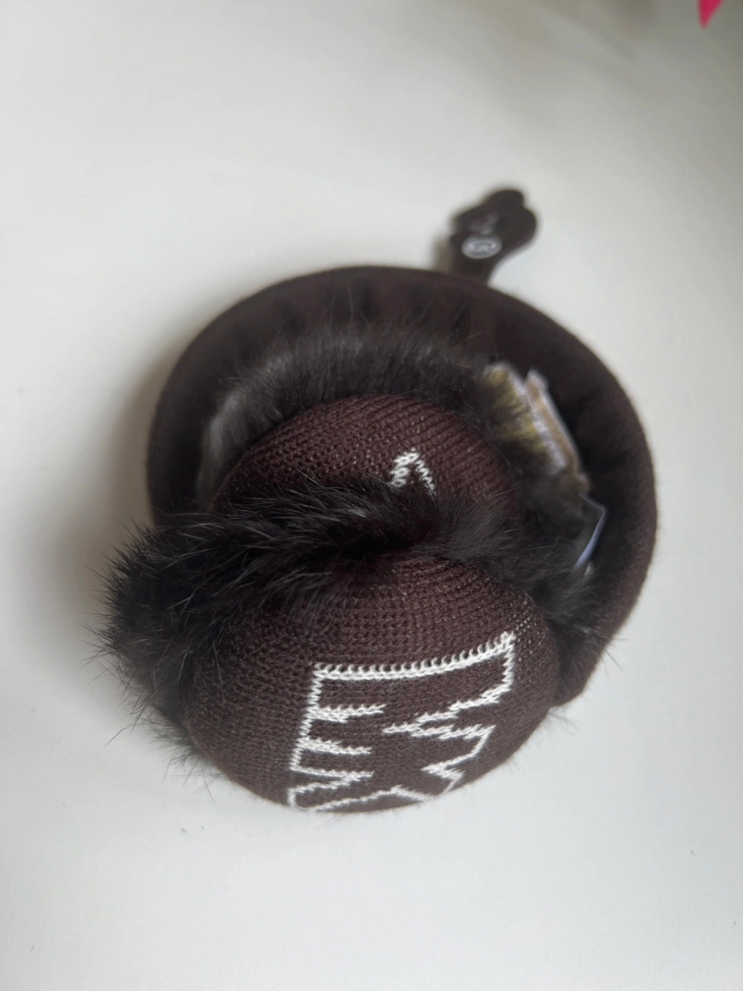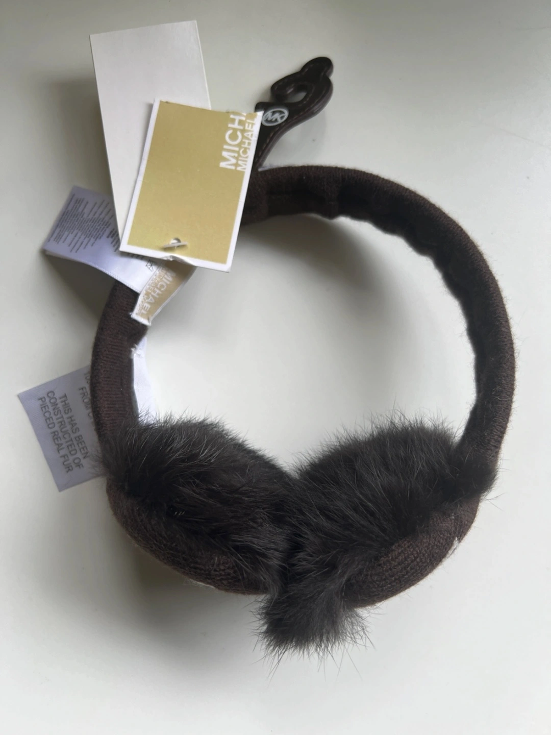 Brown knit earmuffs. Features real rabbit fur. New with tags.
