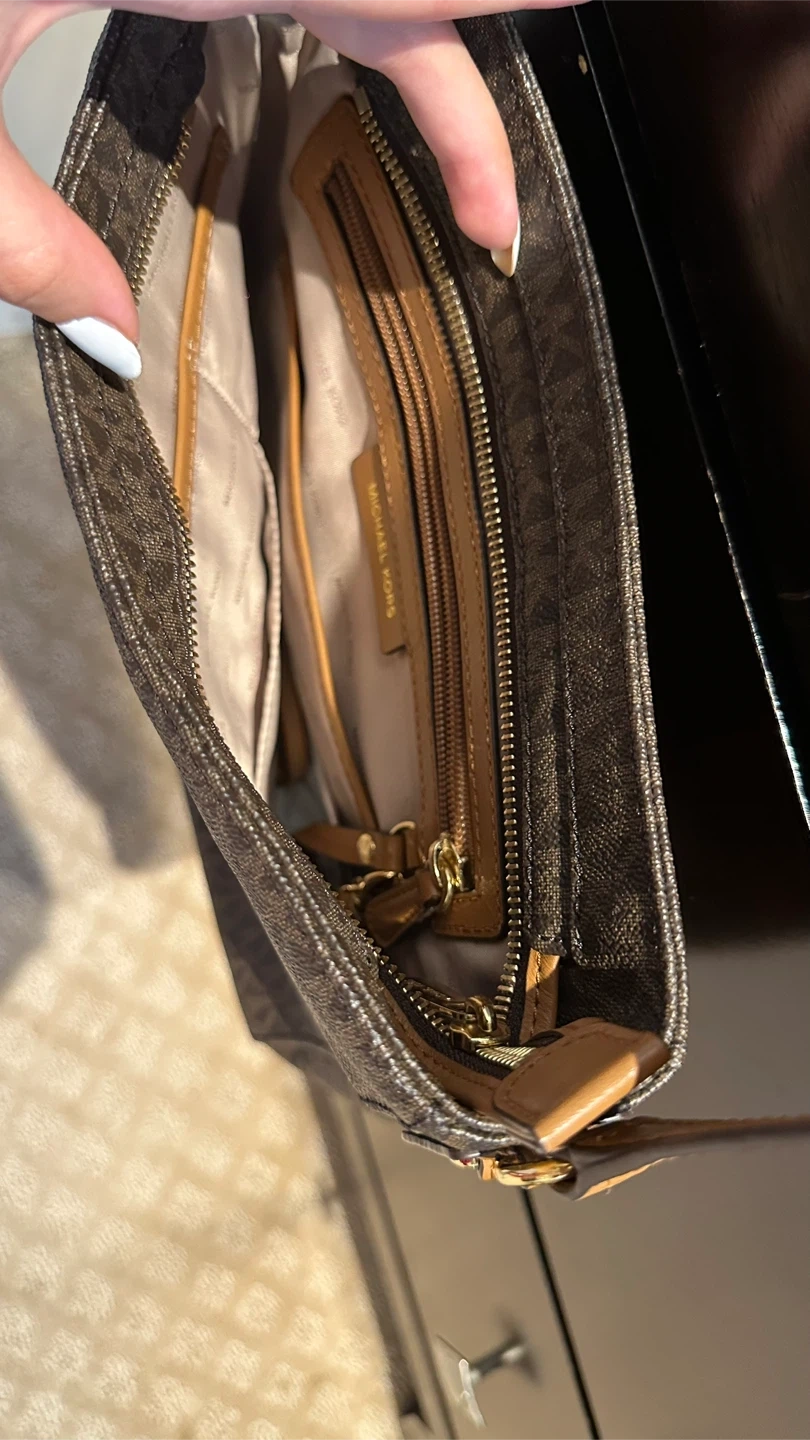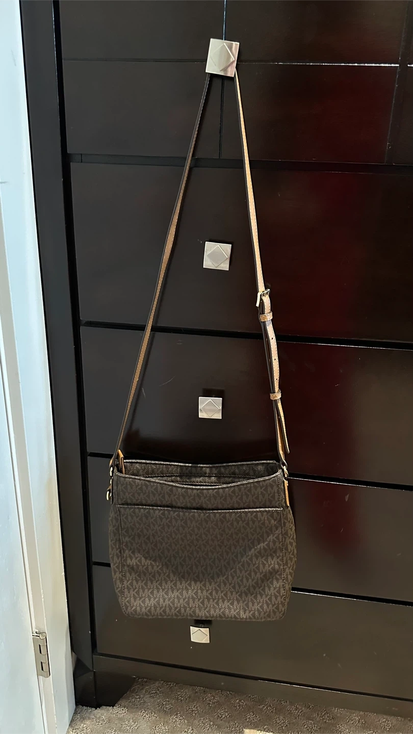 65Selling a Michael Kors crossbody bag! It's in great condition and features the classic MK logo pattern. Perfect for everyday use and keeping your essentials organized.