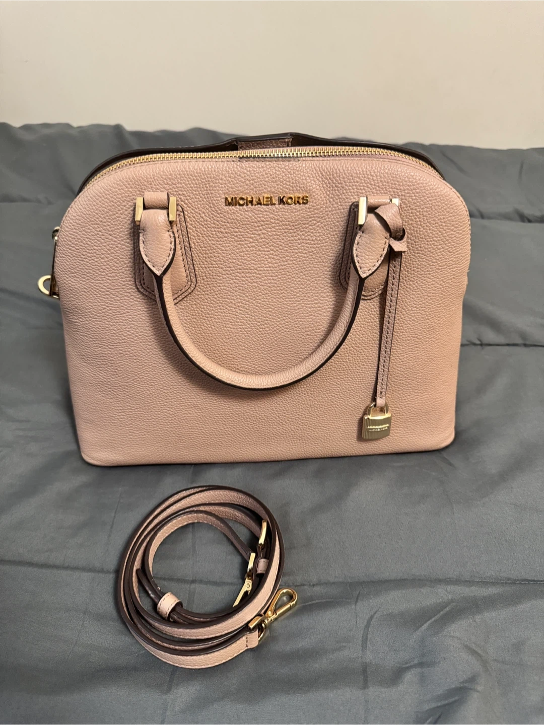 60Selling a Michael Kors dome satchel in a lovely pale pink colour. It's in great condition (used only once) and comes with a detachable strap. Perfect for everyday use or a night out!