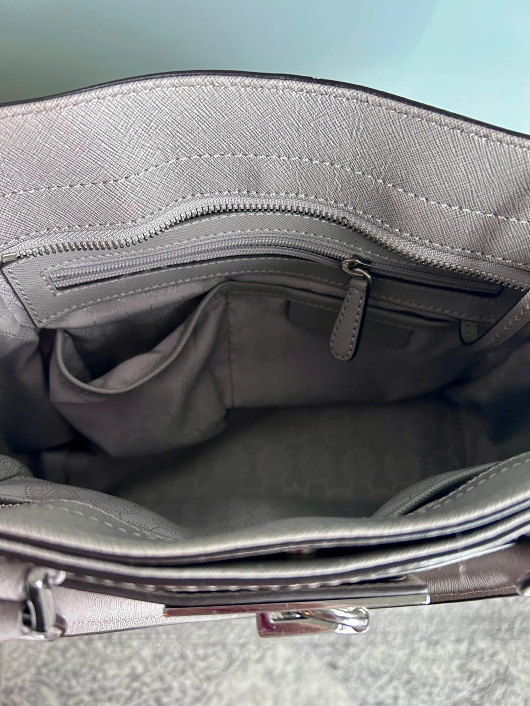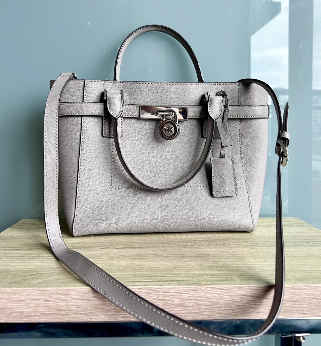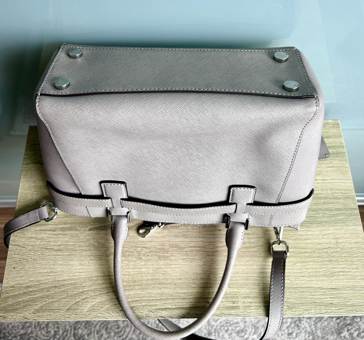 Genuine Michael Kors Grey Purse ๐ This timeless versatile purse features โข durable Saffiano leather โข cross body strap โข zippier closure โข secure wallet strap Open to offers and will deliver for a reasonable fee!