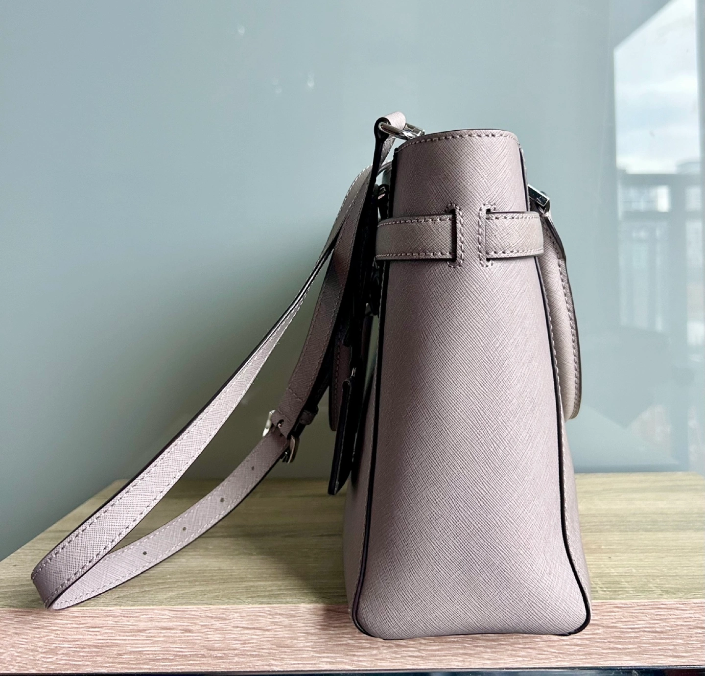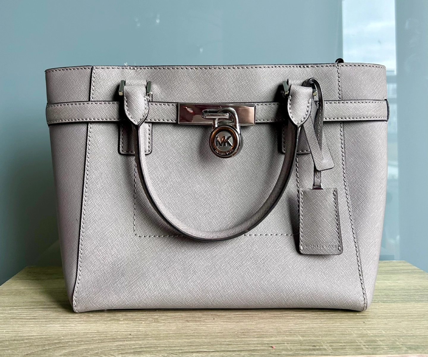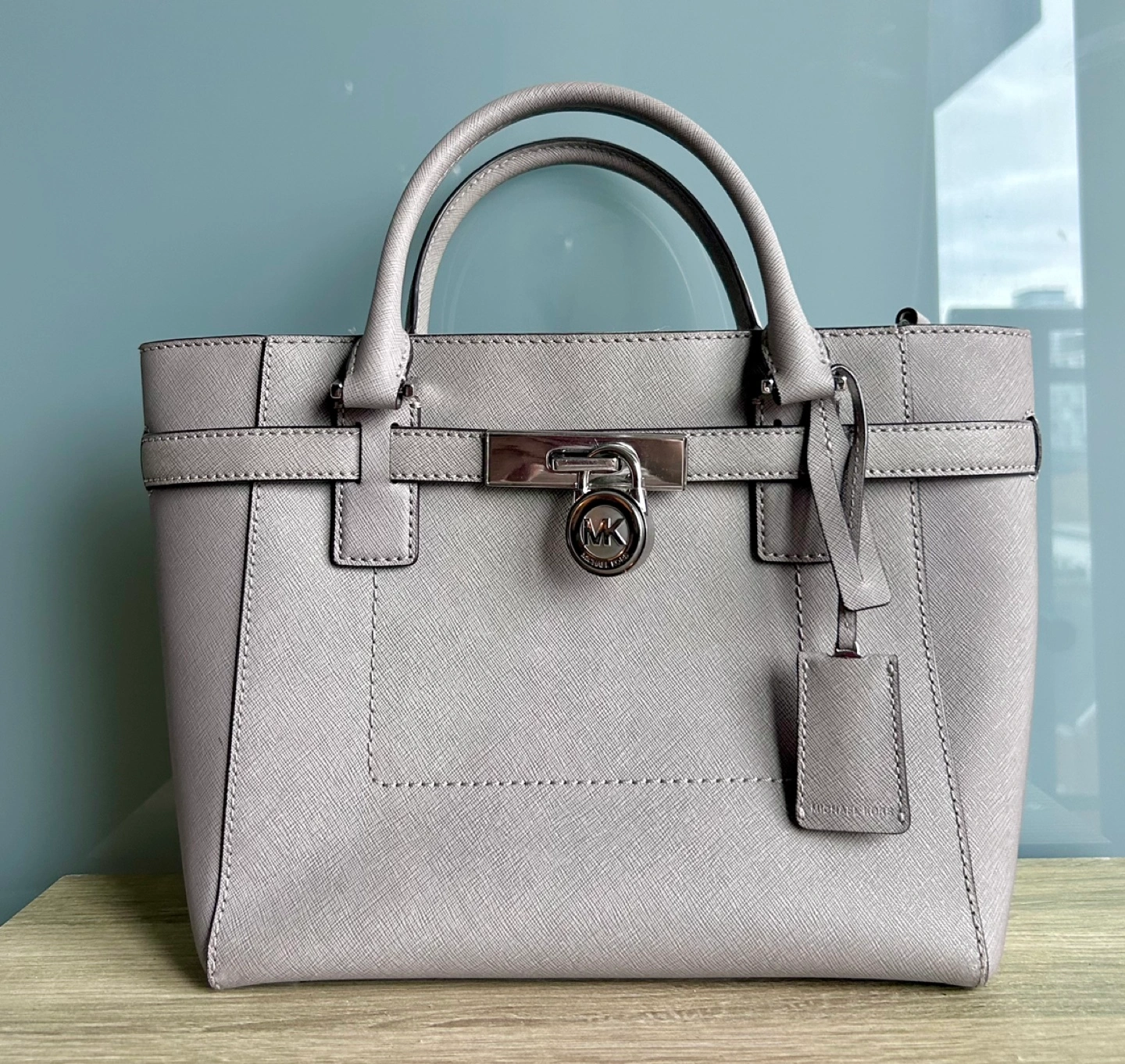 Genuine Michael Kors Grey Purse ๐ This timeless versatile purse features โข durable Saffiano leather โข cross body strap โข zippier closure โข secure wallet strap Open to offers and will deliver for a reasonable fee!