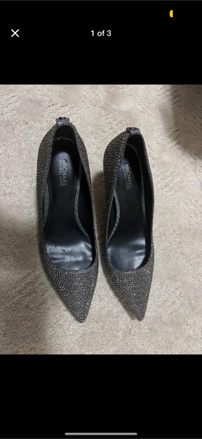 9These are a pair of Michael Kors heels in a size 7. They have a glittery exterior and would be great for a night out