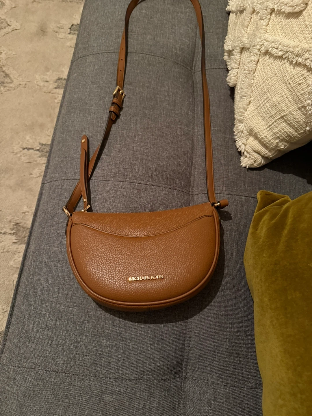65Selling a Michael Kors crossbody bag in brown leather. It's in great shape and perfect for everyday use! The bag features an adjustable strap and a zip closure. The interior has a few compartments to keep your belongings organized. A stylish and practical accessory!