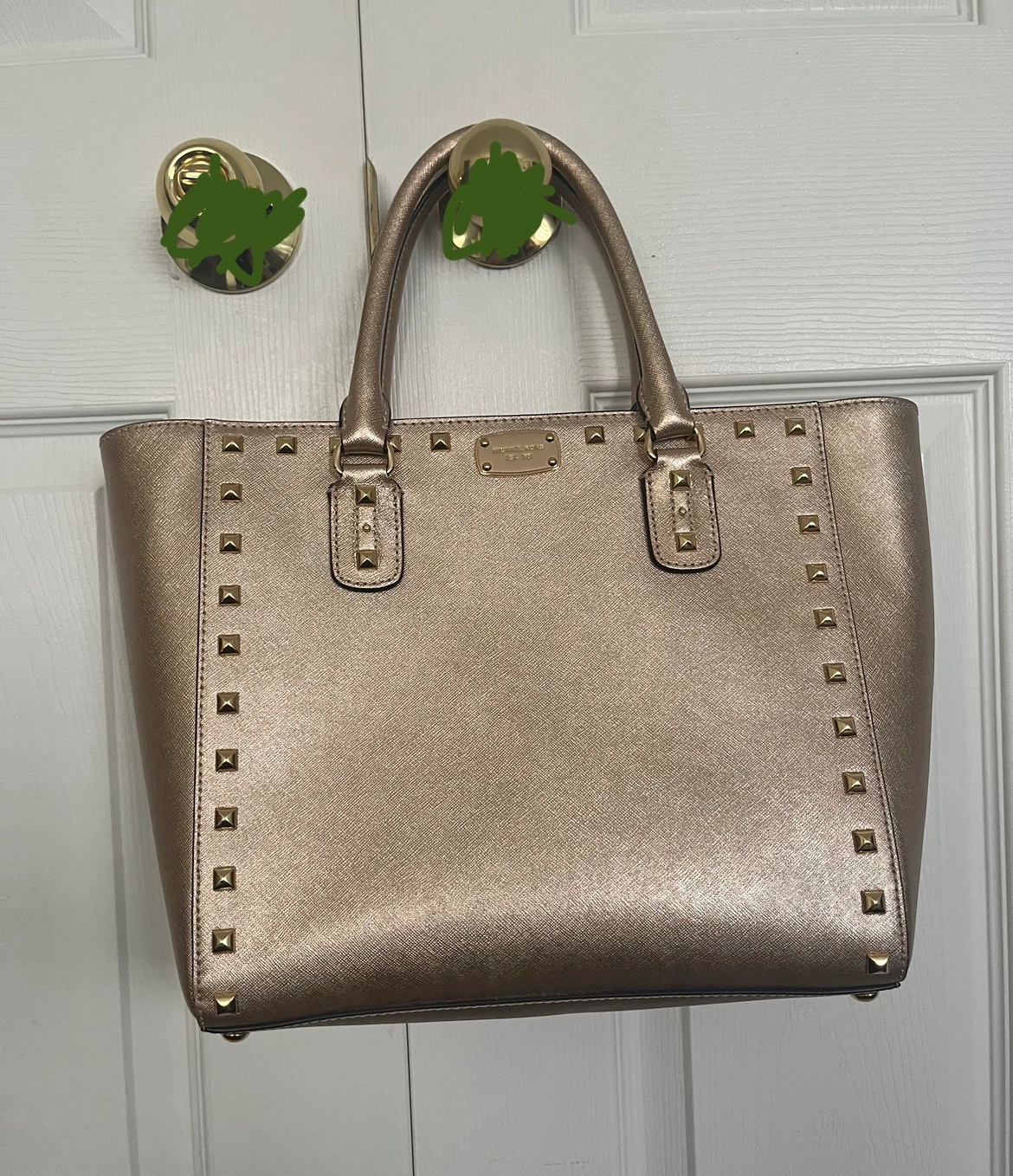 792Gold Michael Kors tote bag with gold studs. Like new condition! Used only once and then left in storage Pickup Brampton or downtown Toronto